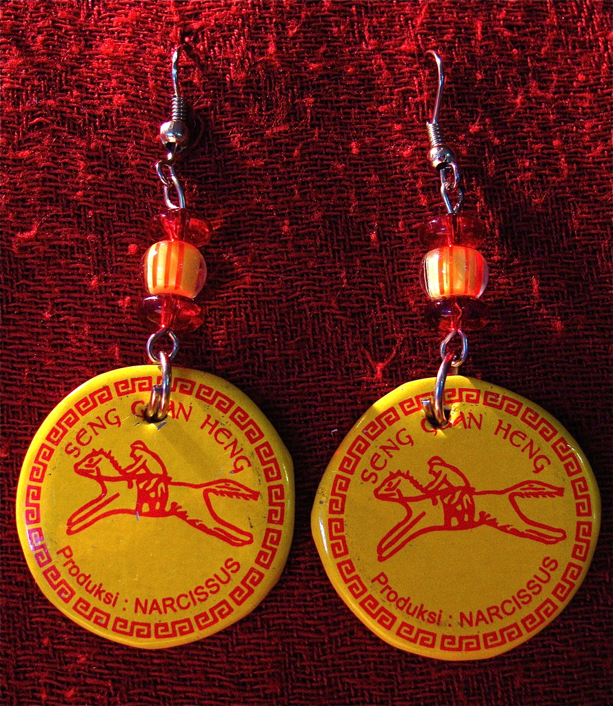 Yellow Recycled Chinese Earth Glass Beads Bottle Jewelry Earrings Caps Eco Upcycled Friendly Reused