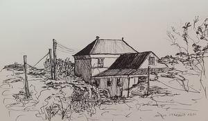 Het oude tankstation aan de Apeldoornseweg. Ik heb het geschilderd, vrij naar een oude zwartwit foto van internet. Het tankstation bestaat niet meer, maar het prachtige gebouwtje, ontworpen door architect S. van Ravensteyn, staat er nog steeds. Helaas staan de letters er niet meer op.