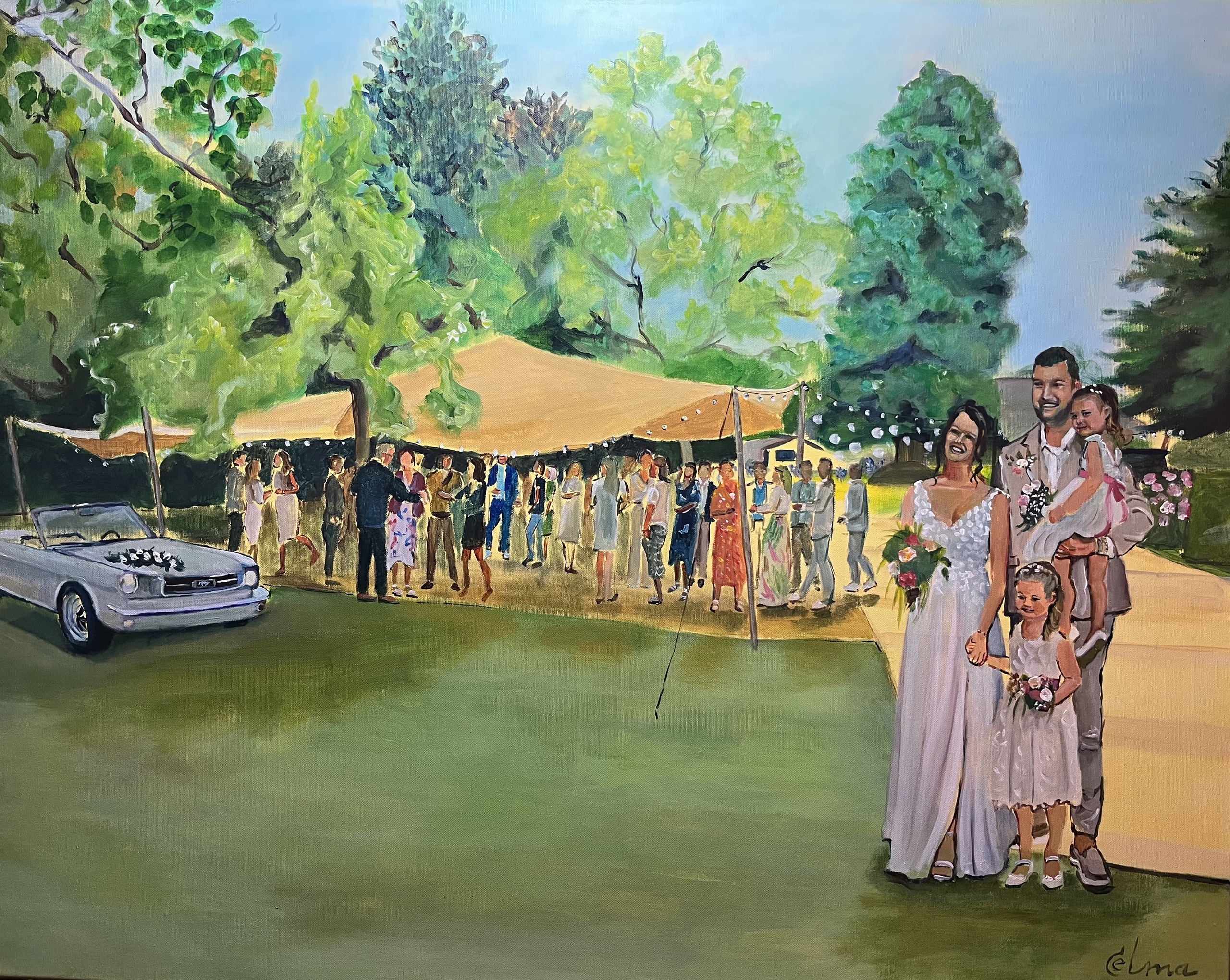 Bruiloft Trouwen Livepaint Schilderij Cadeau Herinnering Achtertuin