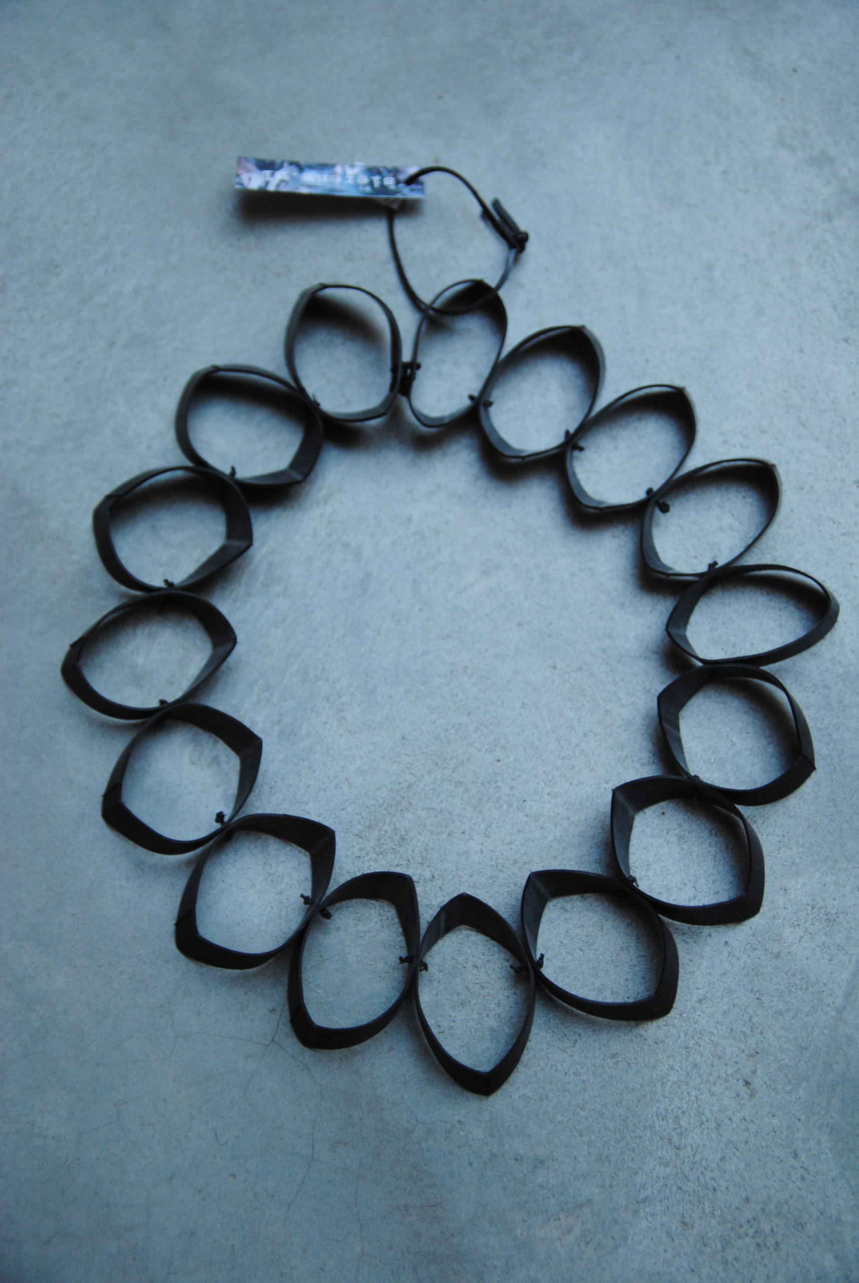 Wij gooien waanzinnig veel weg in onze consumptiemaatschappij. Consuminderen is het uitgangspunt van Irene Pfennings. RUBBER en ander afgeschreven materiaal inspireert haar tot het maken van onder andere sieraden onder de produktnaam SIERENE.