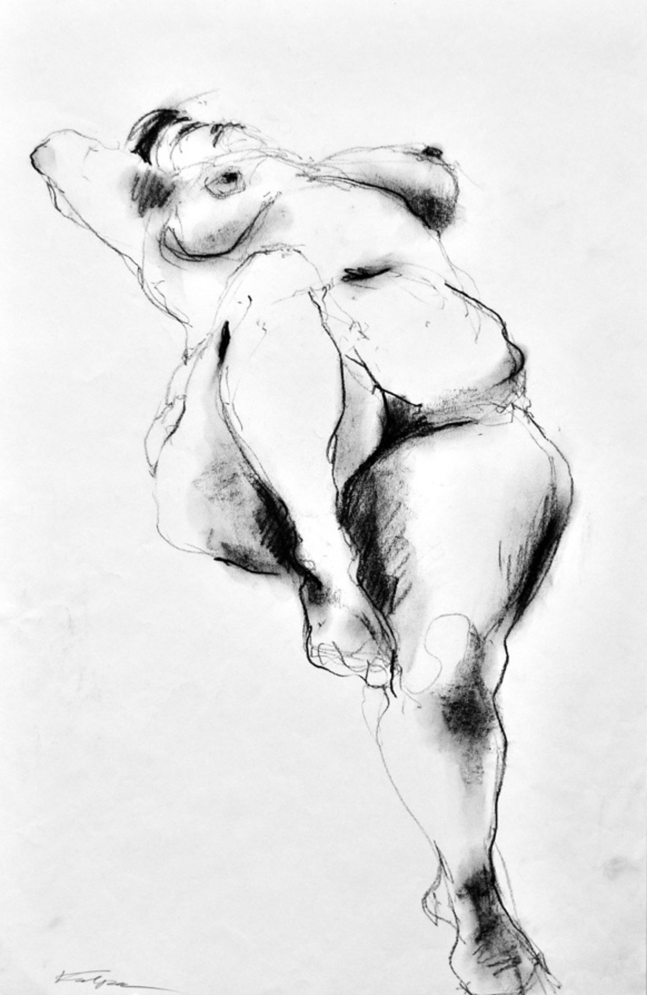 Vrouw Naakt Model Figuur Tekening Women Houtskool Drawing Charcoal Naked