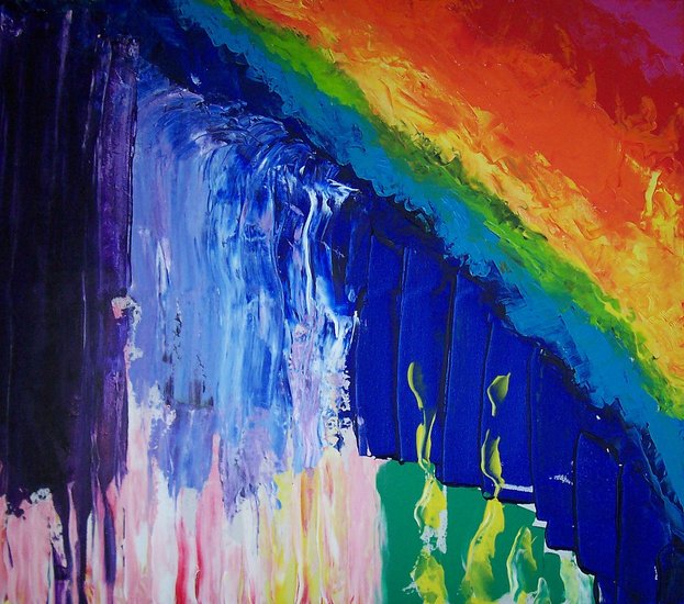 Samen geschilderd met Jacqueline de Keijzer. Zij begon rechtsboven en ik linksonder. Met paletmessen.