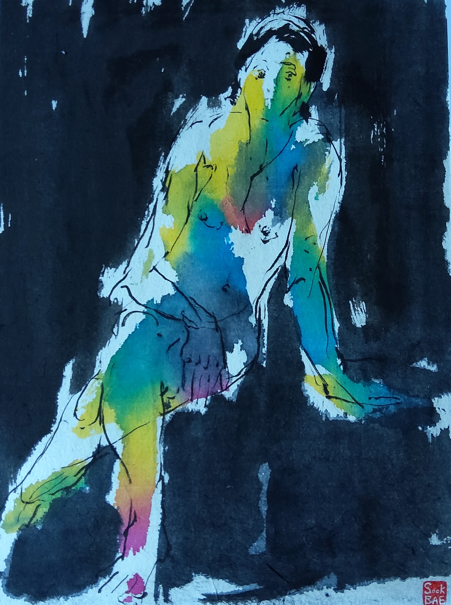 Sook Bae(1959)is in 1980 afgestudeerd aan de young nam college(Toegepast kunsten) in zuid-korea In 1996 volgde zij modeltekenen aan de Grand Academie te parijs Sins 1997 woont ze in Amsterdam. "ik teken en schilder direct naar model Het onderwerp dat my blijvend inspireert is de mens; poserend of bezig met alledaagse dingen, De techniek van het tekenen is sumi-e is mijn grote Liefde. Als ik goed bezig ben, werken mijn ogen en handen Samen en is mijn hoofd leeg; het voelt als een Meditatie"