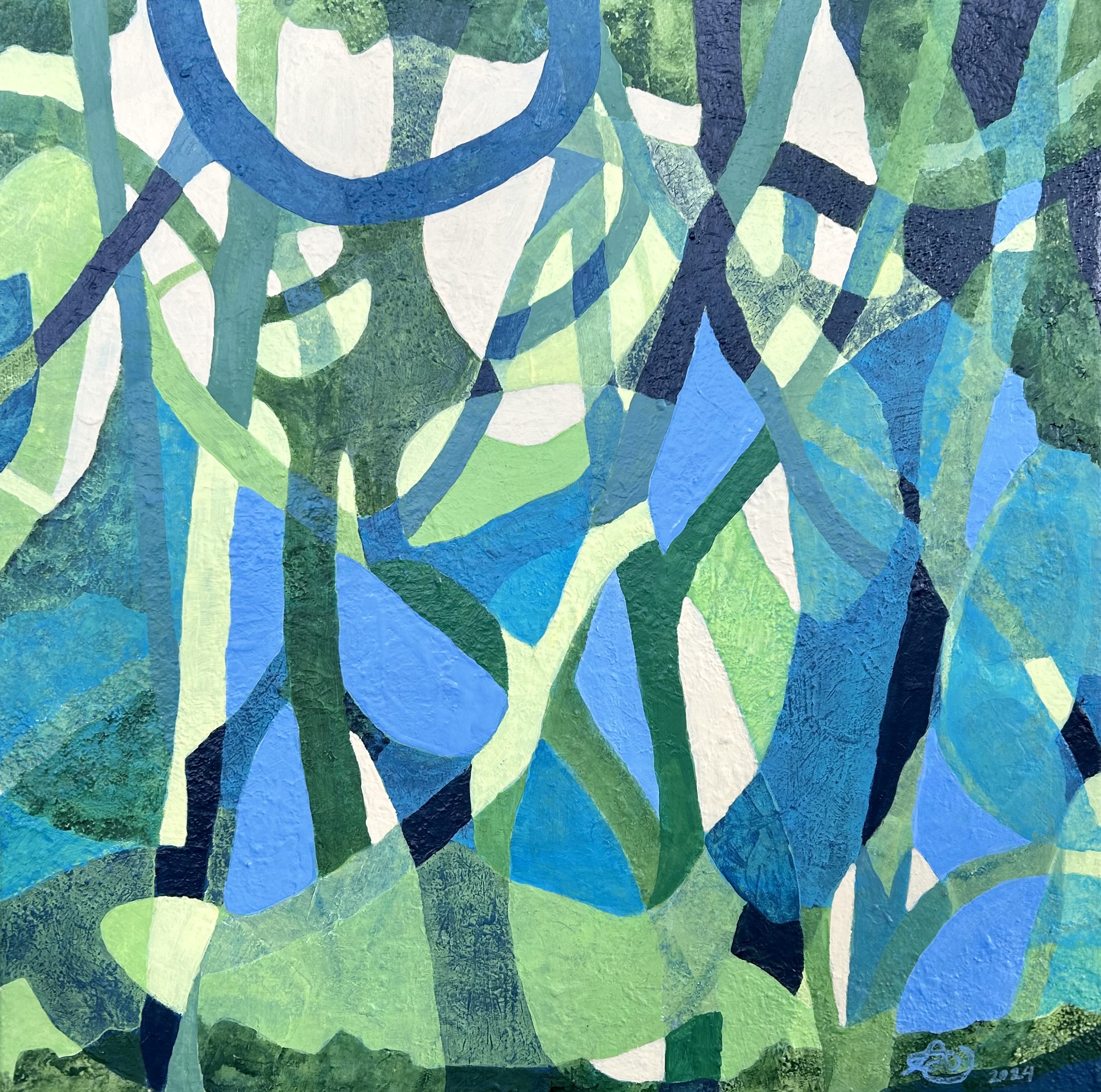 Geabstraheerde Bomen Lichtgroen Donkergroen Blauw