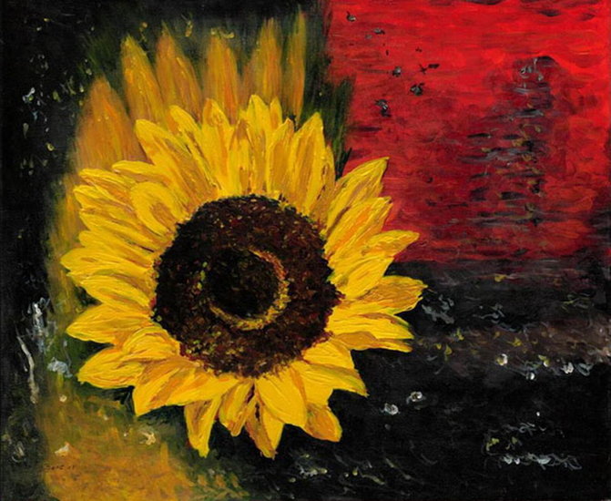 Een zonnebloem op een glasplaat