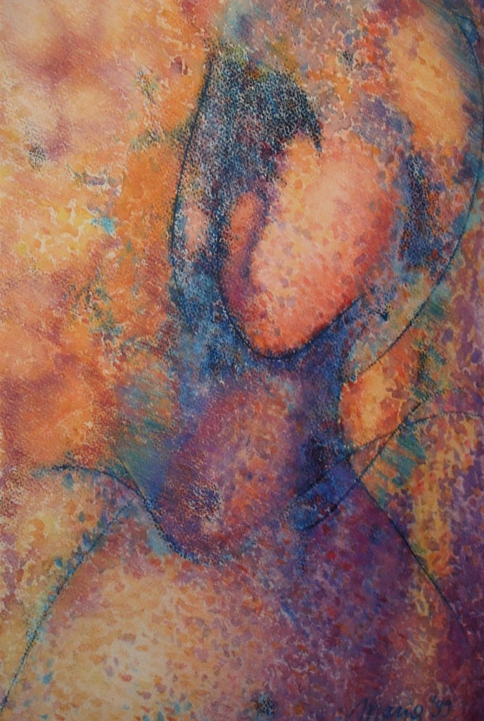 Paars Kind Liefde Aquarel Pastel Moeder Maria Moederliefde Madonna Icoon Monoprint