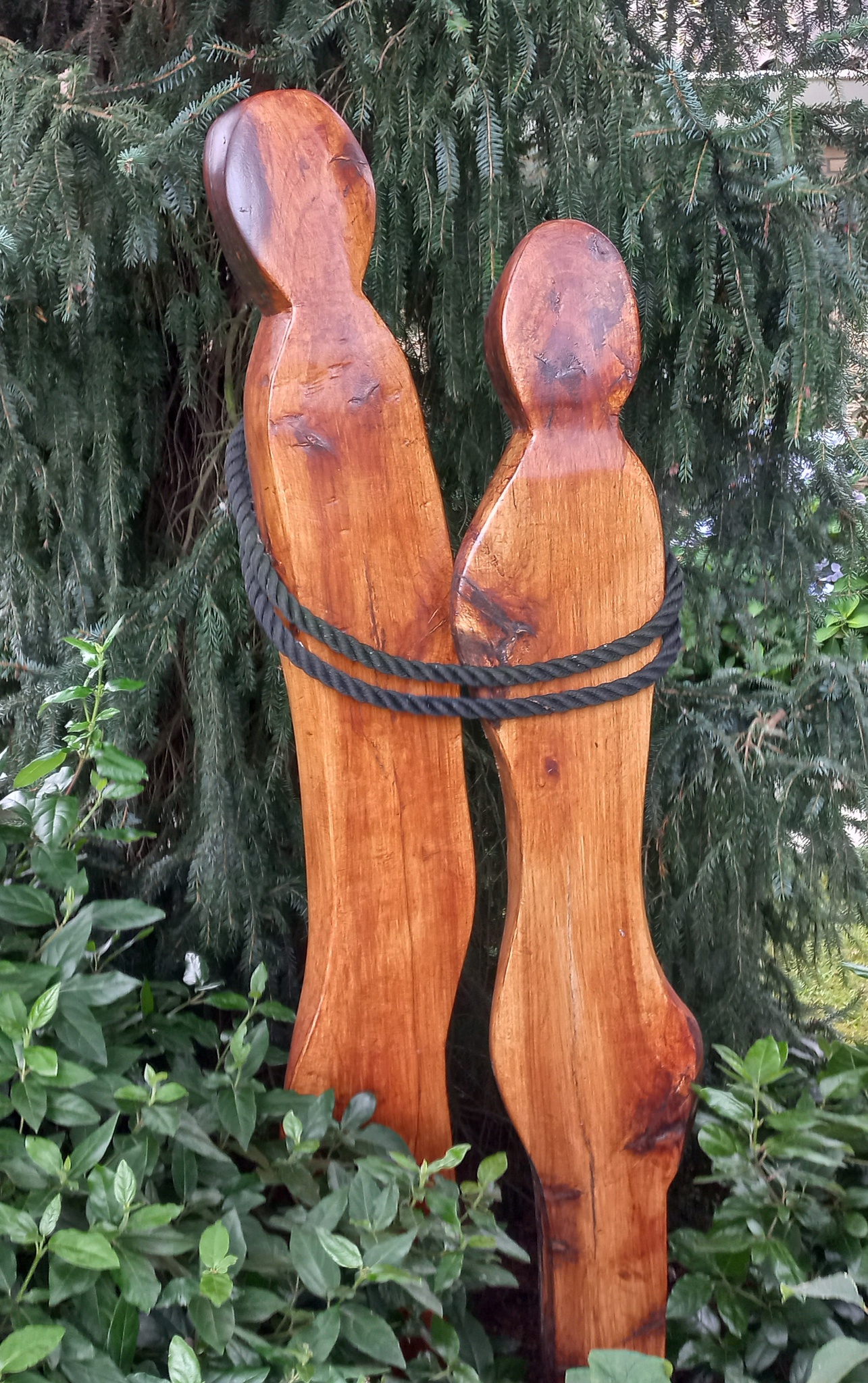 Door totempalen in Canada geinspireerd geraakt ben ik sinds 2002 met hout gaan werken daarvoor beeldhouwde ik met steen In onze Beeldentuin AJ & LW Bier komen de Sculpturen helemaal tot zijn recht