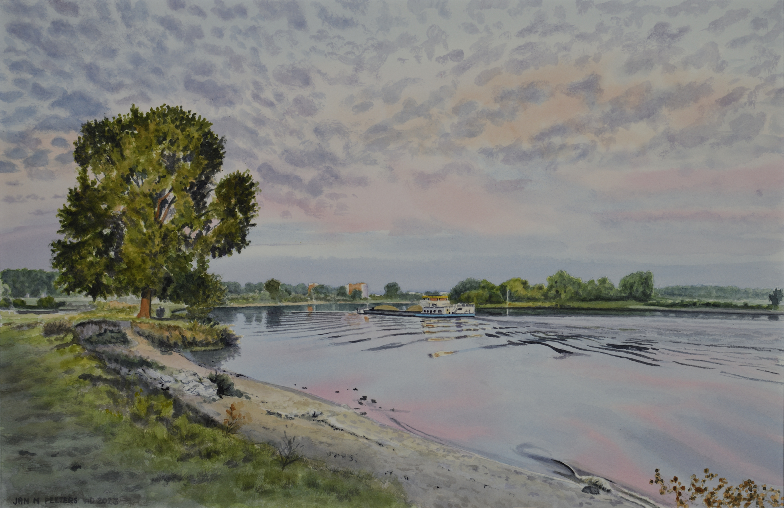 De Maas (bij Oud-Empel) bij zonsopkomst