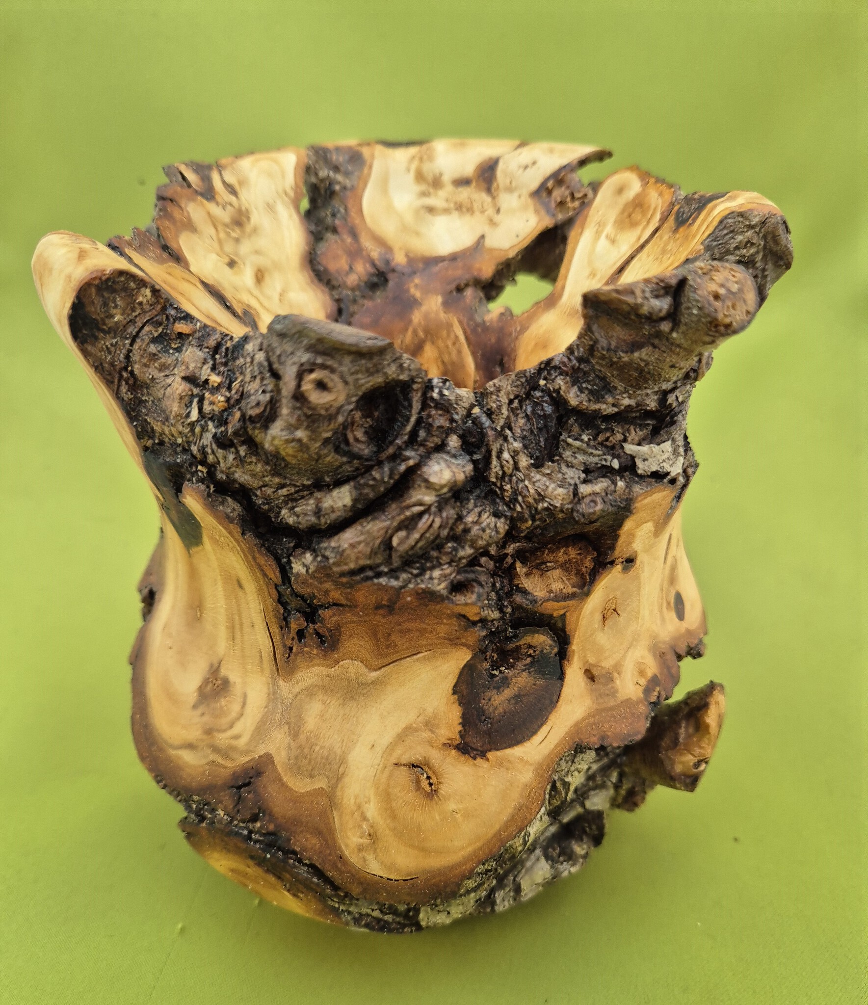 Bij thuiskomst vond ik verleden jaar een paar geknotte leilindes op de oprit. Leuk, van zulke verrassingen houd ik. Je weet niet wat je tegenkomt bij het draaien van zo'n object. Deze knot had veel uitsteeksels en dat is na het draaien nog steeds te zien. Dat mag ook.