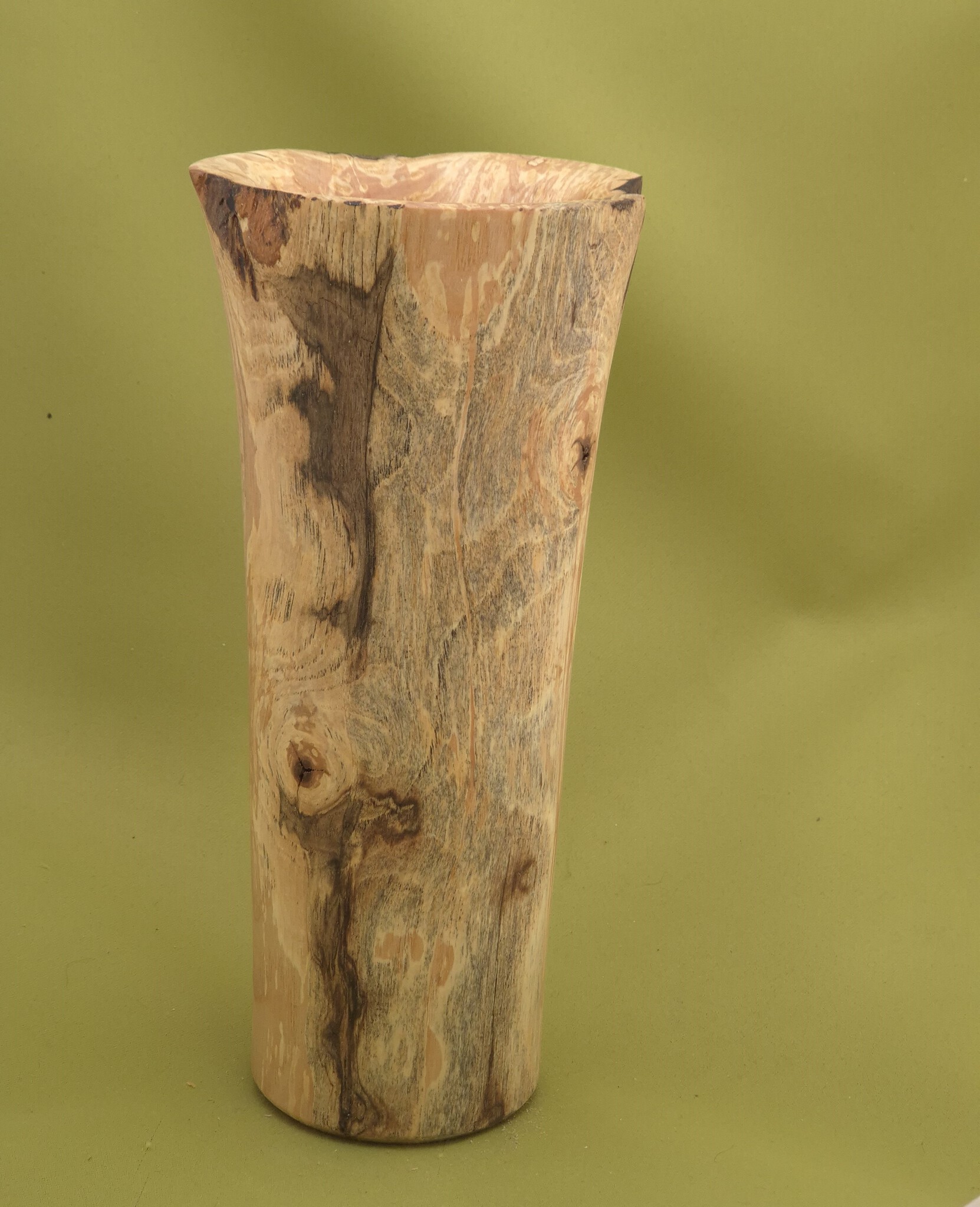Schijnbeuk is een struik/boom die niet heel oud wordt. Dit exemplaar was na 20 jaar op. Maar dat het hout na het doodgaan van de boom zijn schoonheid prijsgeeft, is een cadeau.