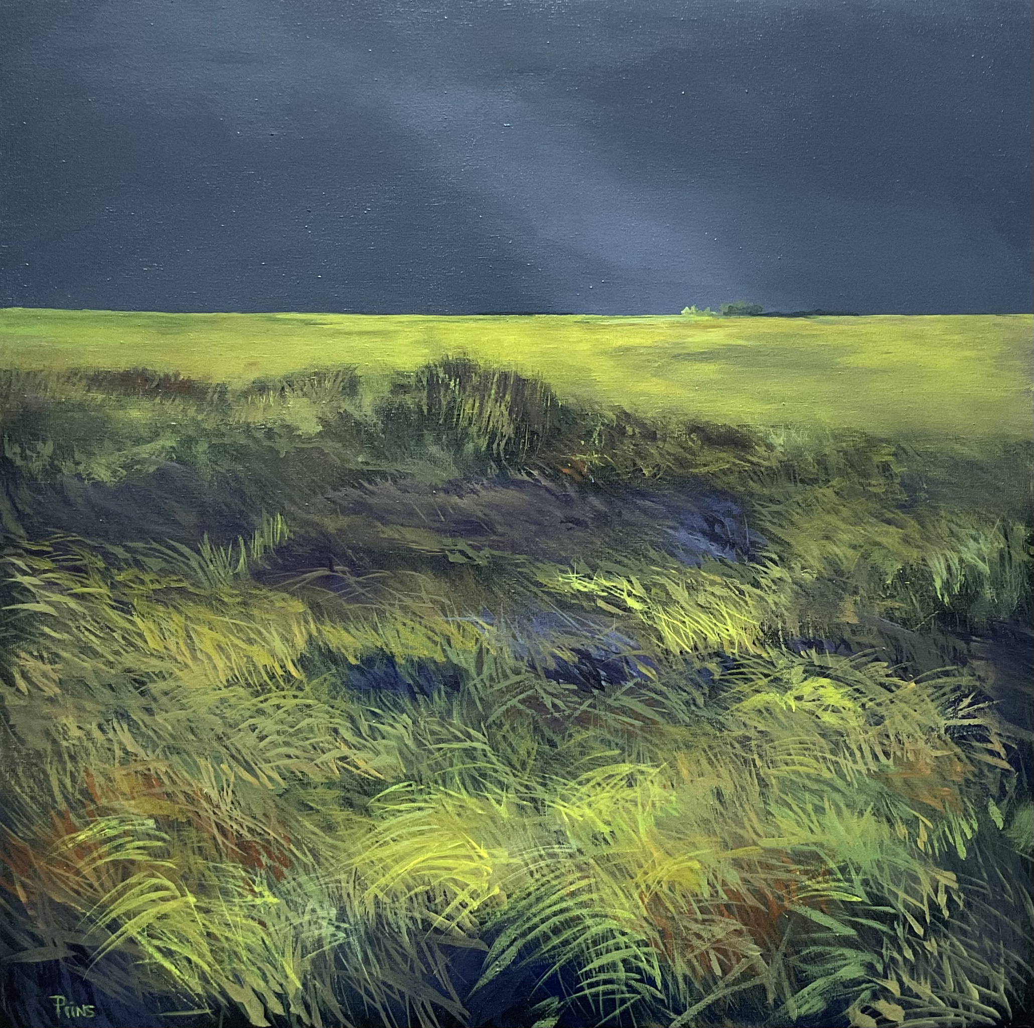 Het werk WestenWind is genomineerd voor Painting of the Year 2024! Wil je het schilderij in het echt zien? Dan ben je welkom in Galerie RRMD waar vanaf 18 januari tot 1 maart 2025 een overzichtsexpositie is met werk van de nominees. WestenWind brengt wolken met veel waterdamp. Voel de wind welke de grassen in beweging brengen. Jury reports Very nice how the eye is led through the plane, through the luminous grasses via the blue to those luminous trees on the horizon. The grass is beautiful! It moves, dancing through the quick light touches and use of colours. Also beautiful how the elaborate grass in the foreground blends into the grassy area in the back. There is a true artist at work here.