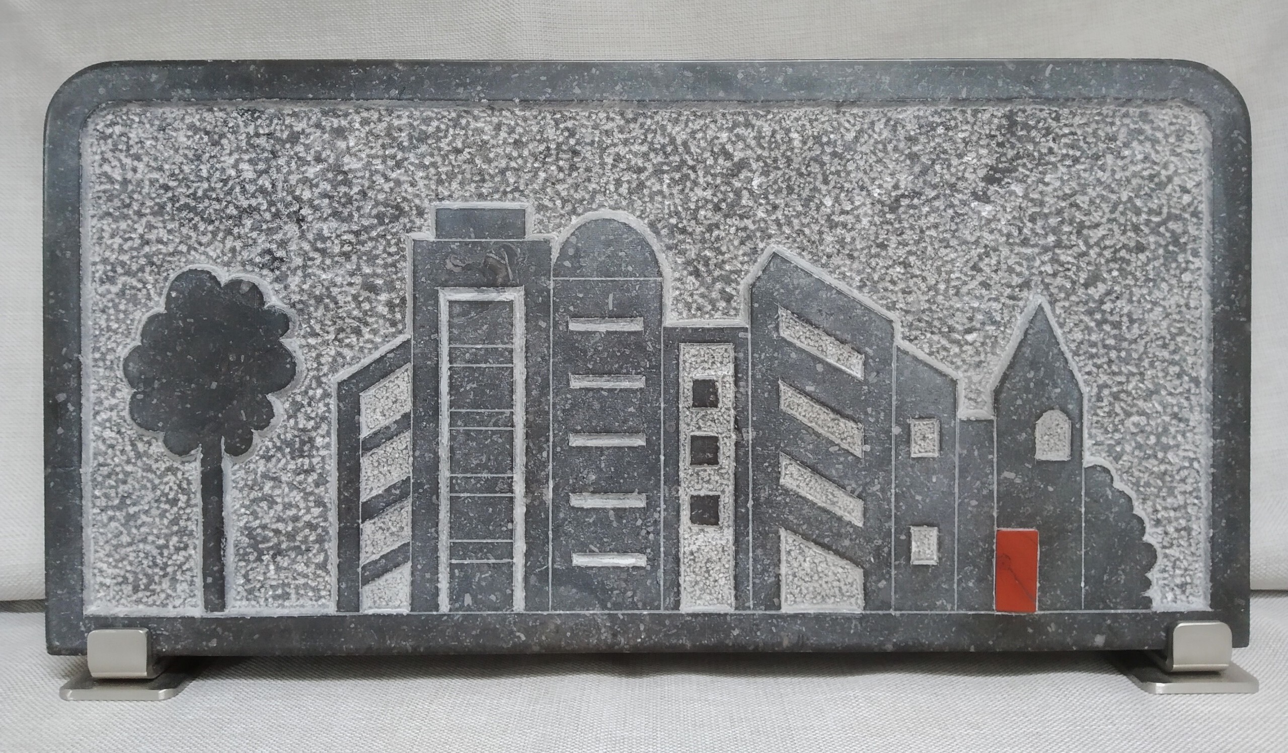 Wandtableau stadsgezicht, de rode deur