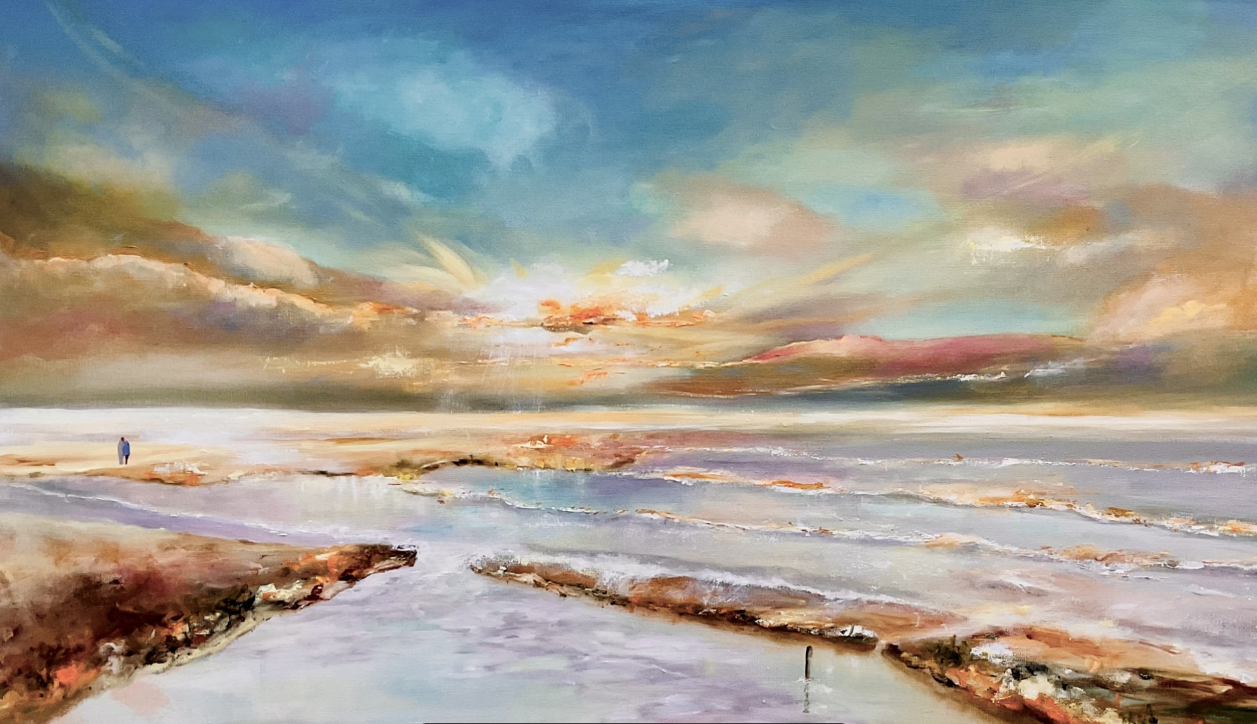 olieverf en aquarel, impressionisme, realistisch. Luchten, water, ruimte, licht en wolken