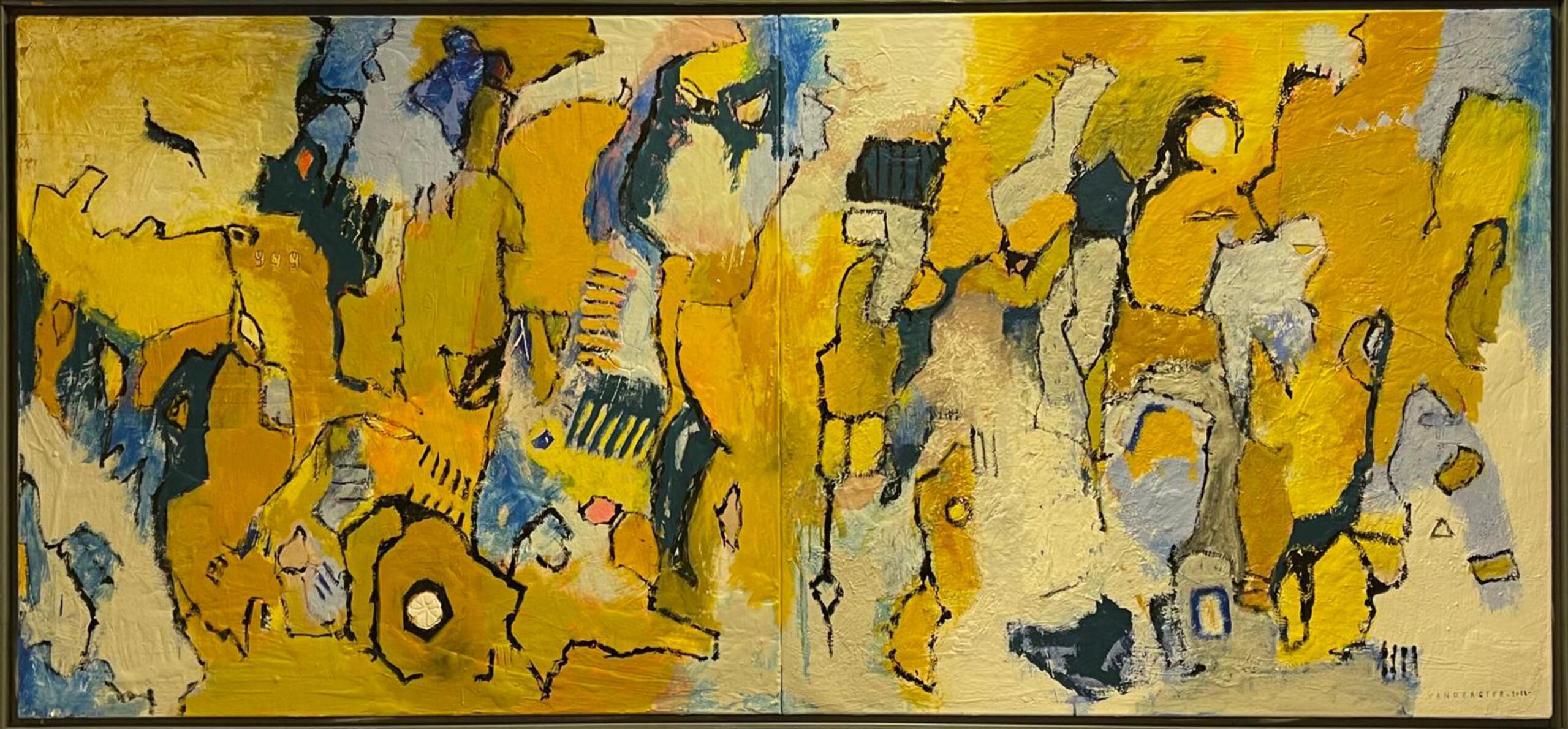 Langwerpig Abstract Schilderij Met Veel Oker Kleuren