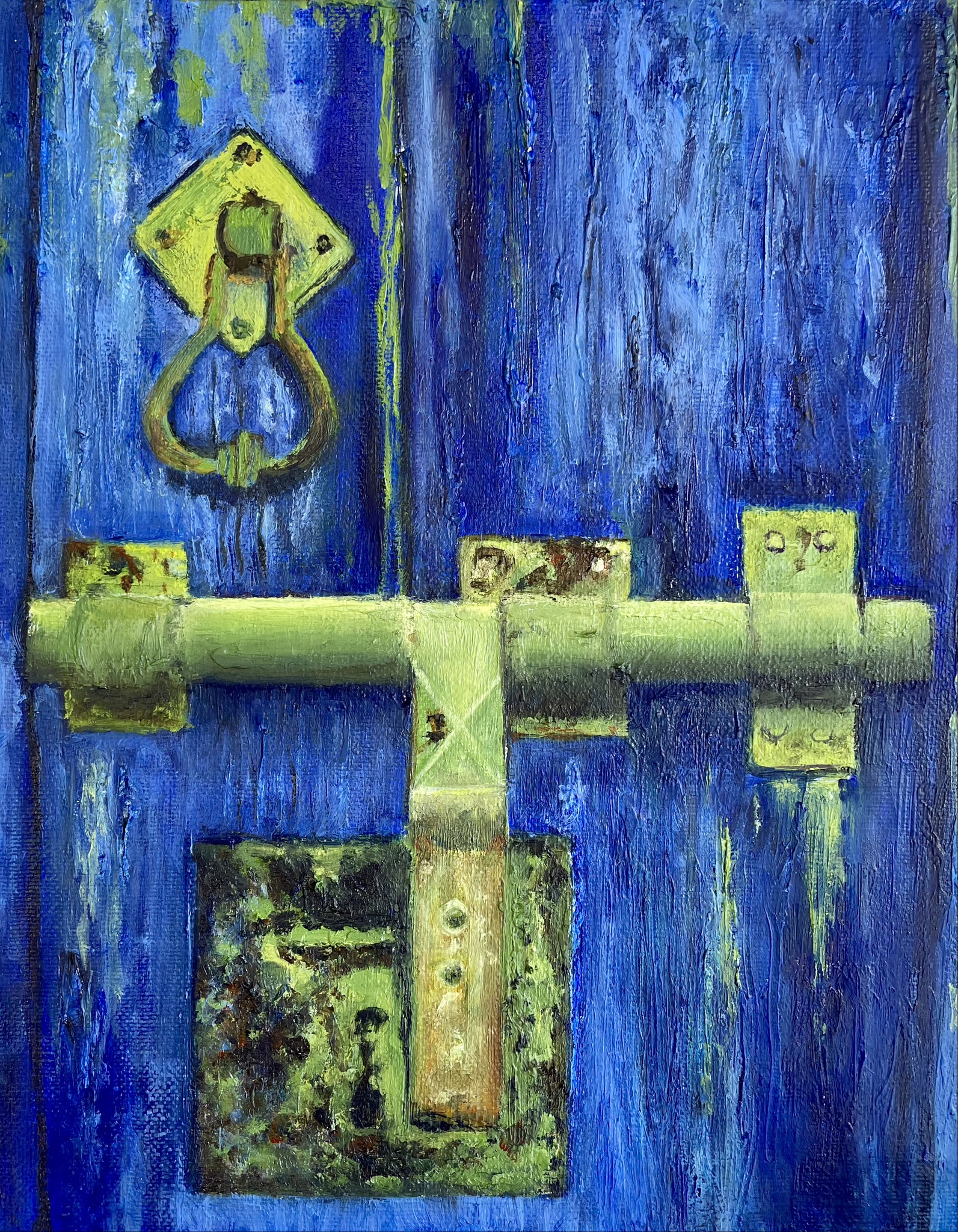 Blauwe deur met slot.