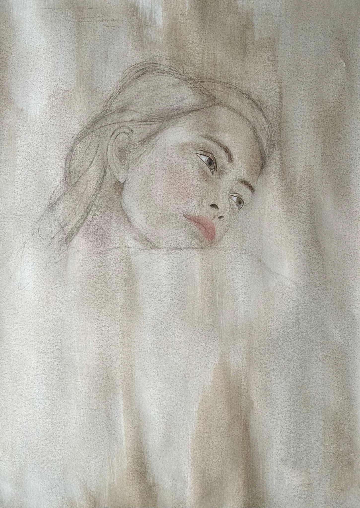 Expressief Portret Papier Realistisch Pastel Grafiet Vrouwenportret Bister