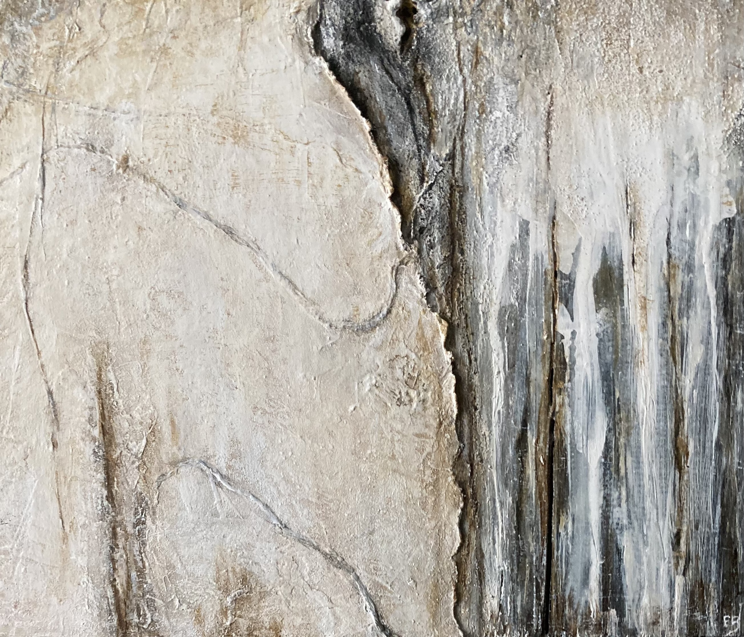 De ondergrond van dit werk is oud hout. Een impressie van oude oppervlakten bv. oude deuren, oude muren.