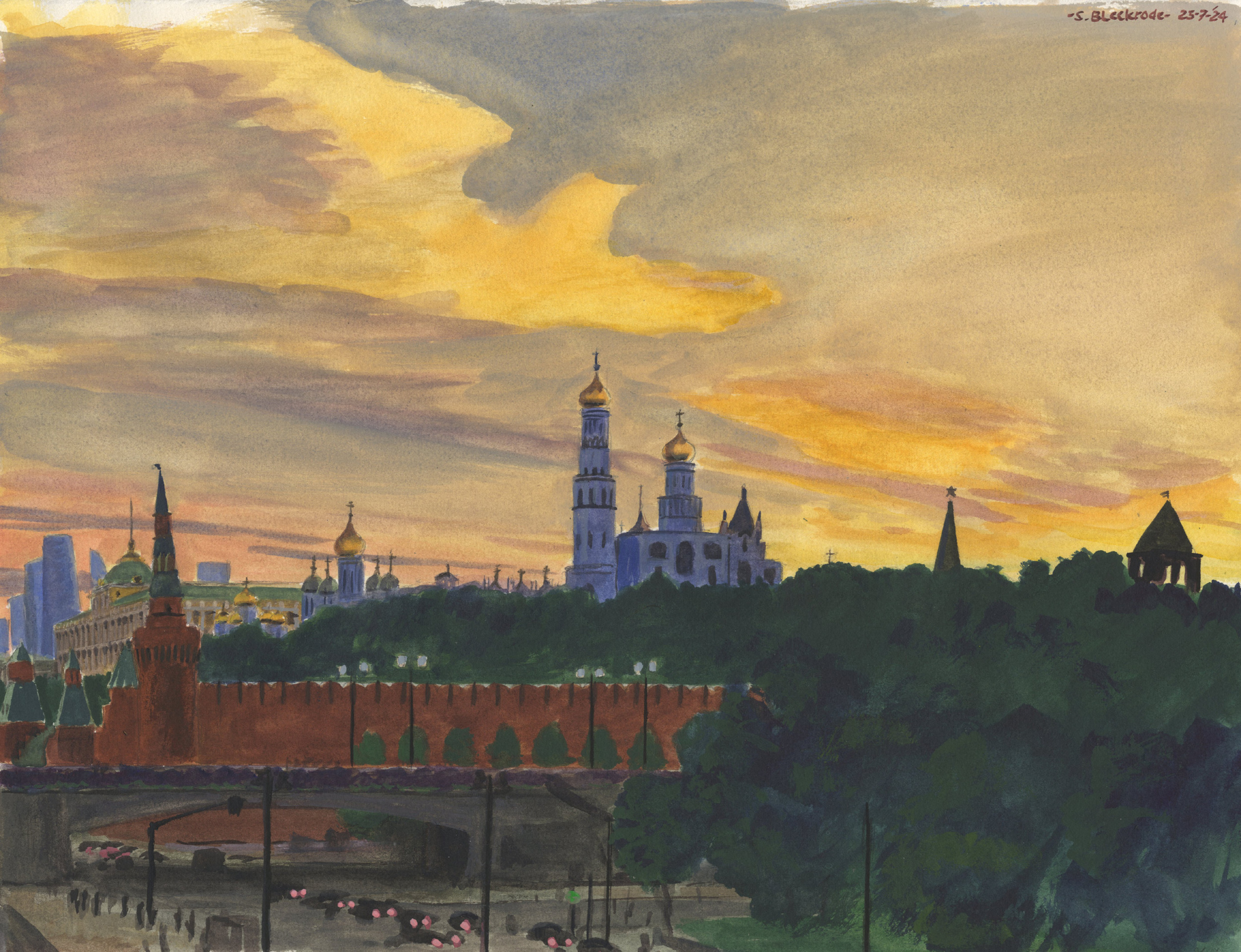 Schilderij Art Aquarel Kunst Painting Realisme Realism Watercolor Stad City Moskou Rusland Russia Moscow