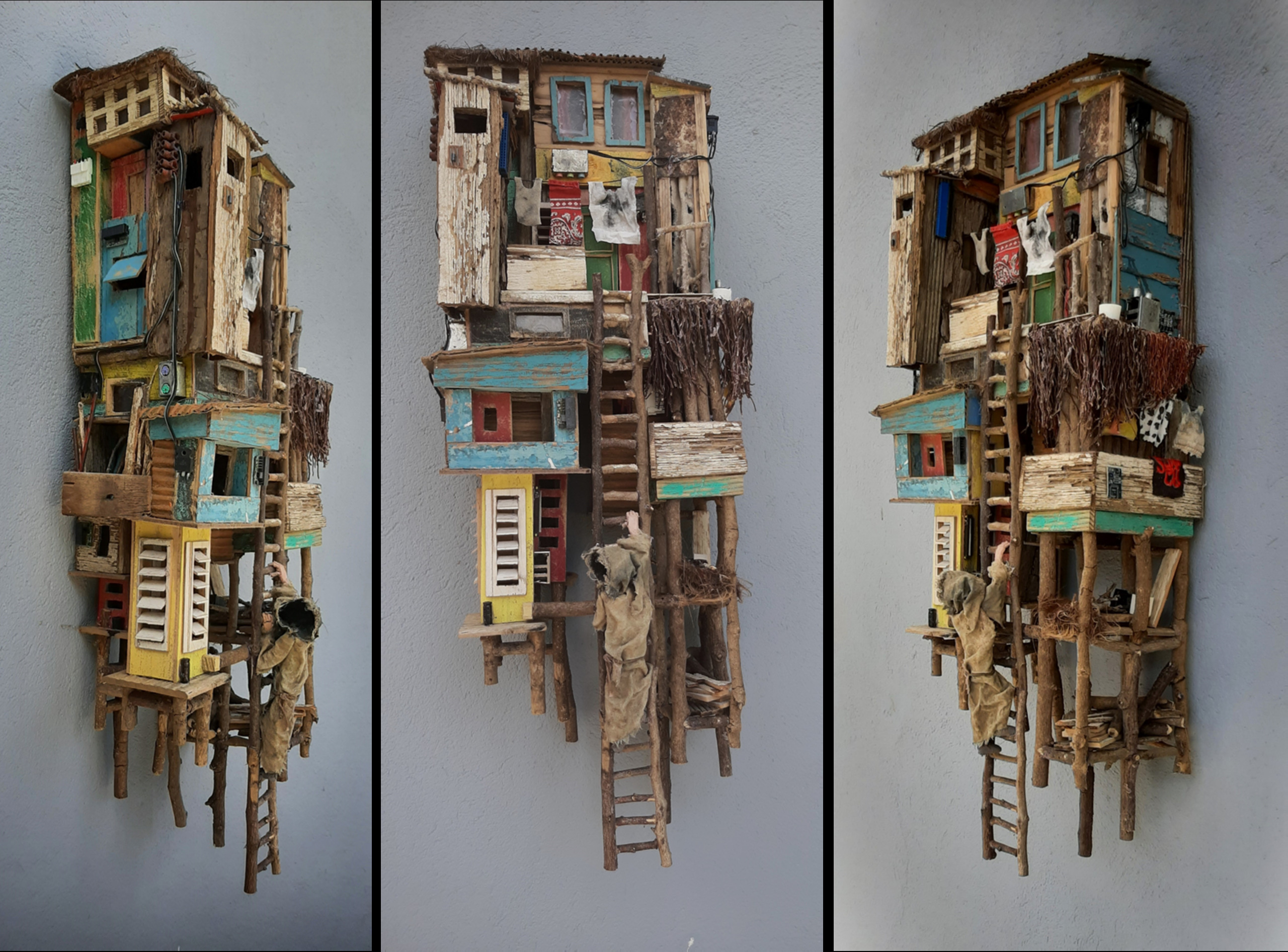 Ooit begonnen vanuit interesse in woonvormen zoals die over de hele wereld voorkomen, is mijn thema constant 'habitats'. Het huidige werk is altijd het resultaat van mijn fantasie.