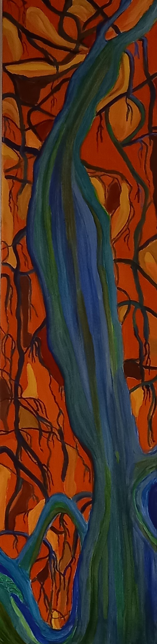 Eén boom maar verdeeld in 2 stukken. Dit is de linkerkant. Kleurrijke achtergrond. Boom (bomen) bewust transparant gehouden om in feite de "sappen" van de bomen weer te geven.