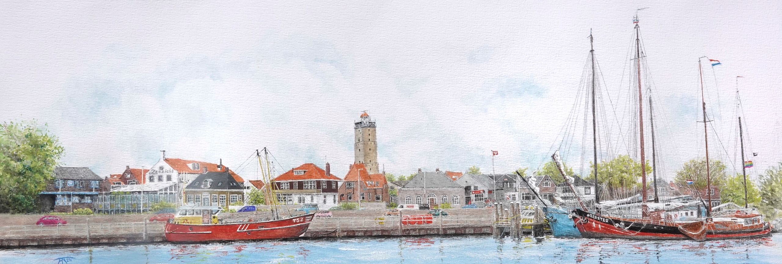 West Terschelling Brandaris Haven Aquarel Frans Nennie