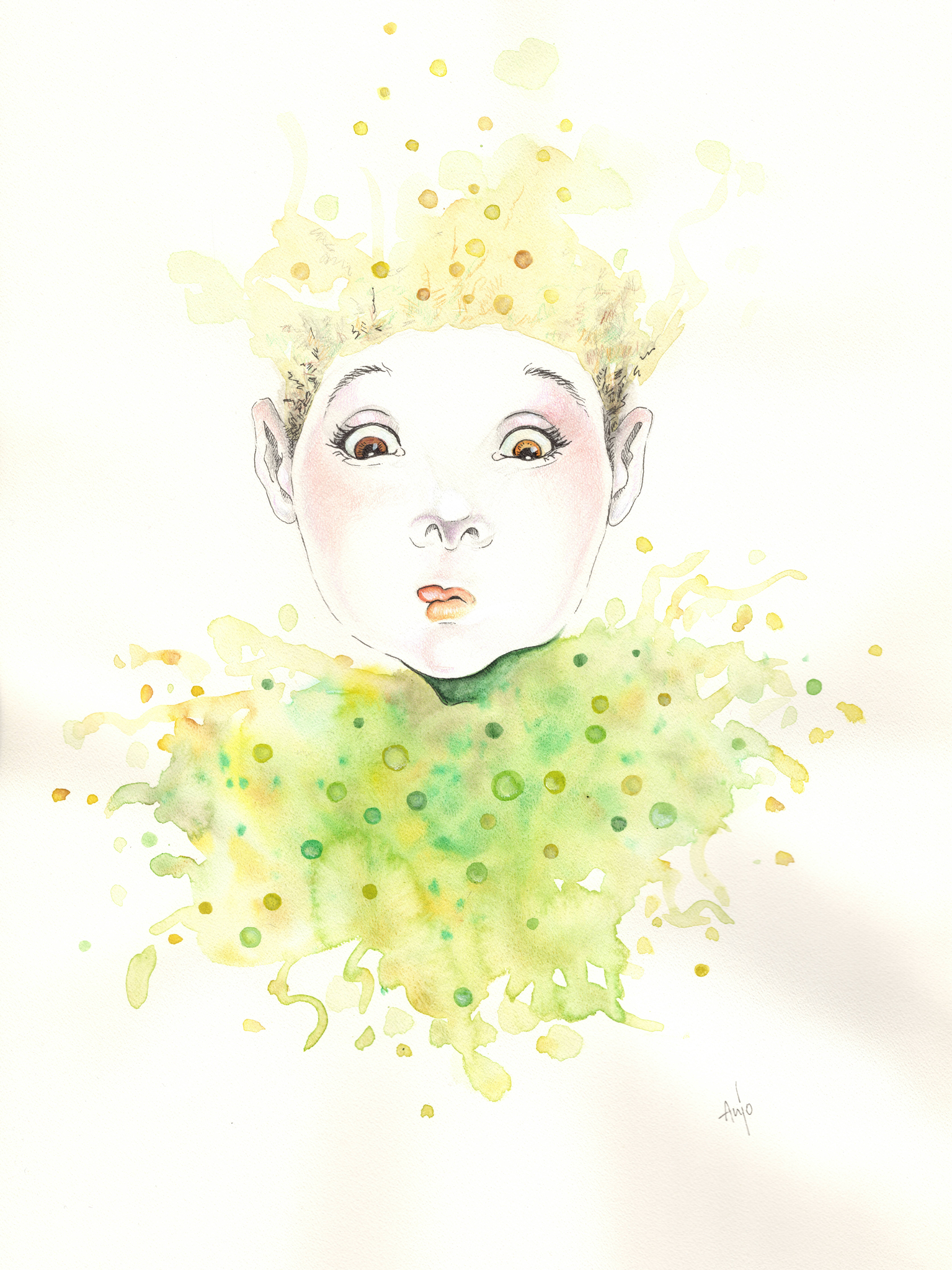 Niet alleen gemaakt met aquarelpotlood, maar ook met penseel en aquarel. Ik begin met de ogen te tekenen en laat me dan leiden door wat er ontstaat. Het resultaat is steeds een verrassing voor mezelf!
