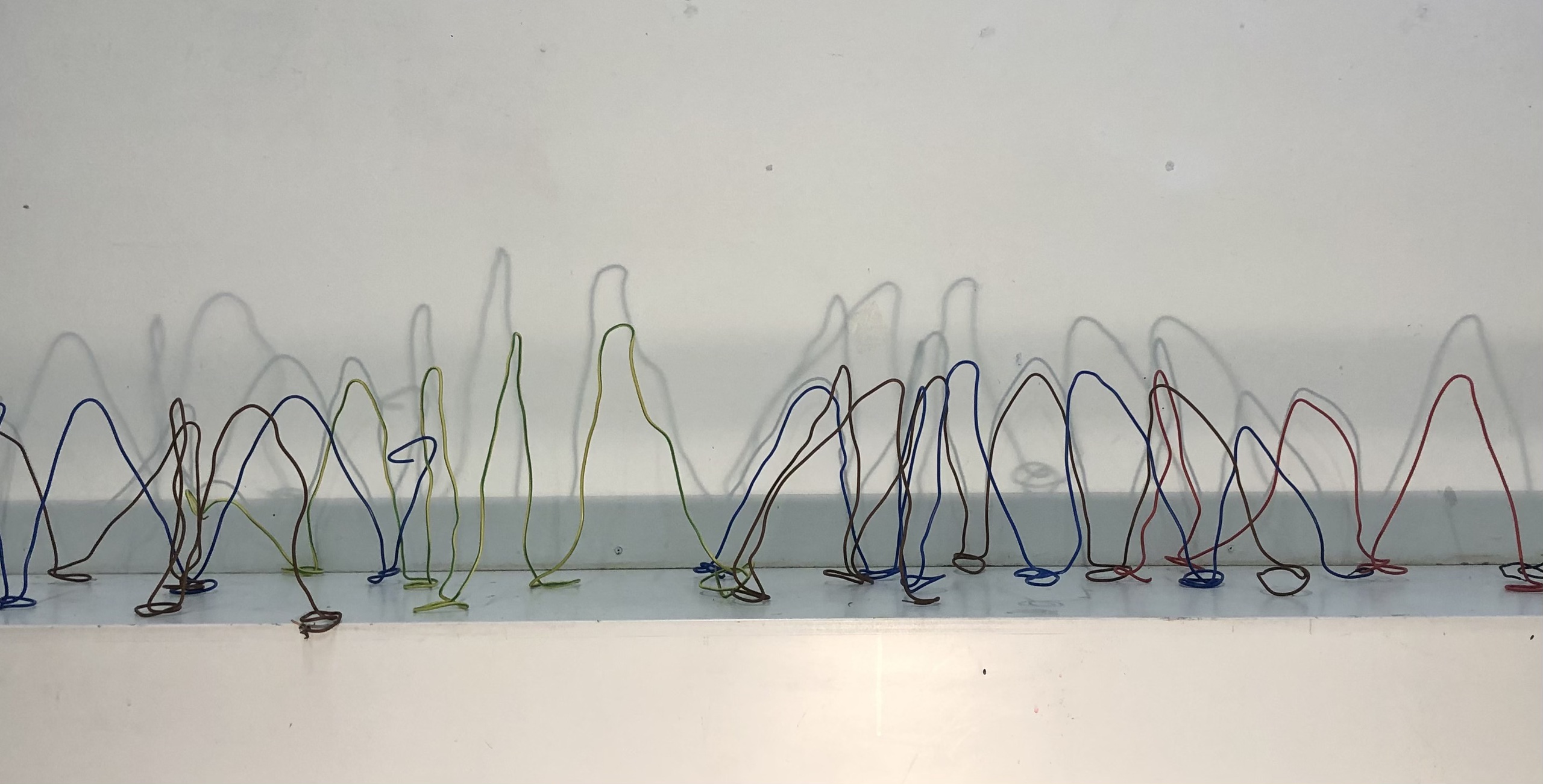 Dansen. Materiaal: elektriciteitsdraad en licht
