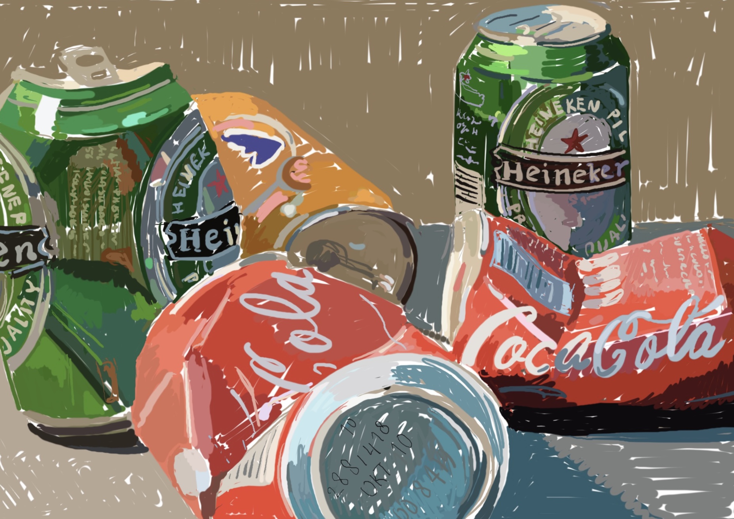 Metaal Bier Drinken Afval Cola Frisdrank Drankje Blikjes Sinas Schets Tekening Ipad Digitaal Rood Groen Heineken Oranje Geel Blauw Zilver