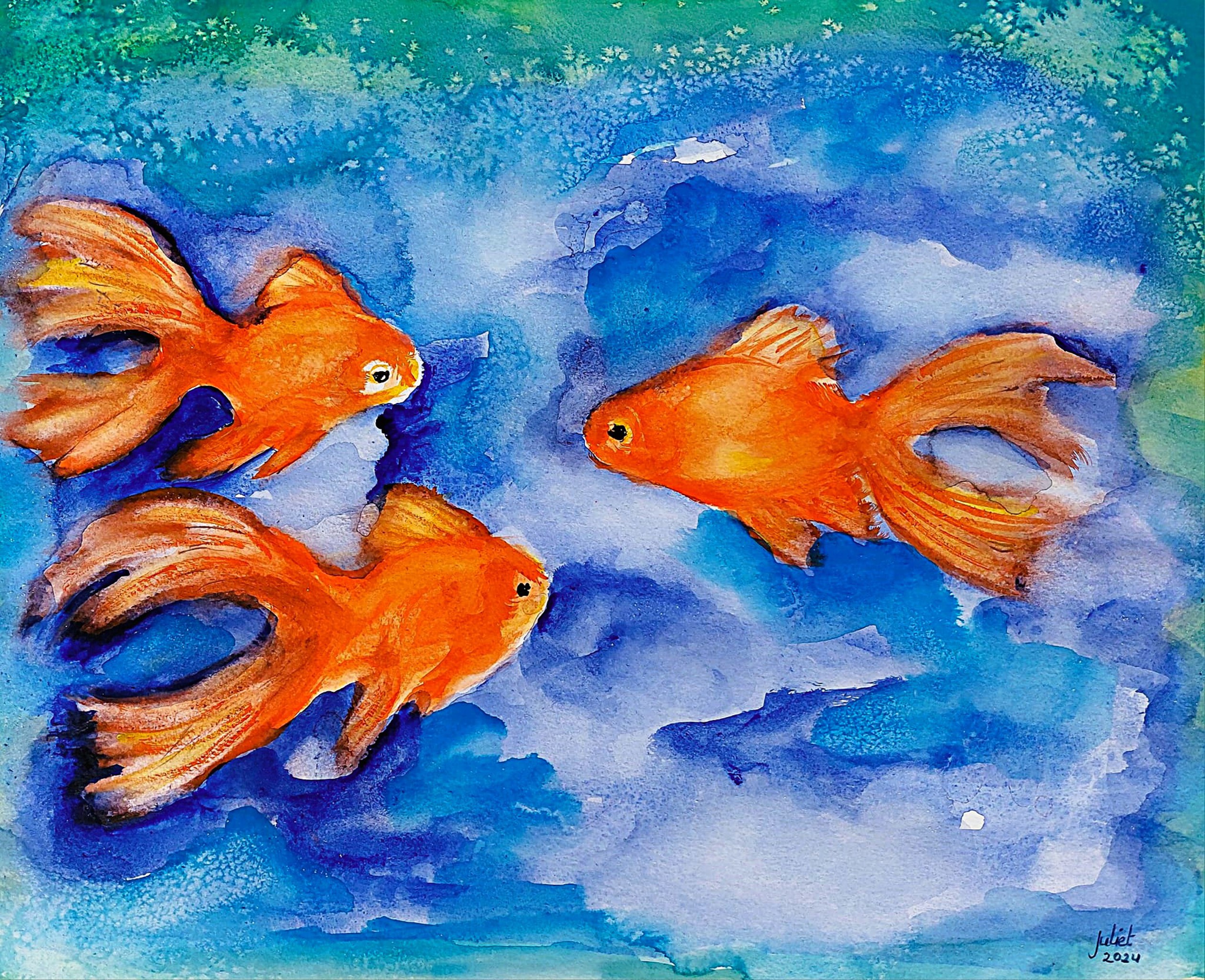 Oranje Goud Water Aquarel Goudvissen Aquarium