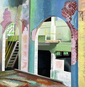 Maaike Nijlunsing schildert veelal gebouwen, waar het verval haar intrede heeft gedaan. Ze heeft een grote voorliefde voor industrieel erfgoed en slooppanden. Oude fabrieken, maar ook leegstaande flatgebouwen of woonwijken in afwachting van afbraak. In de schilderijen staat gelaagdheid centraal, in samenhang met het zoeken naar de suggestie van diepte in het platte vlak van het canvas. Maaike studeerde in het jaar 2000 af aan de Academie Minerva in Groningen. Daarna specialiseerde zij zich in het schilderen aan de DAI in Enschede en studeerde filosofie aan de Rijksuniversiteit Groningen. Maaike woont en werkt in het Groningse Noordbroek.