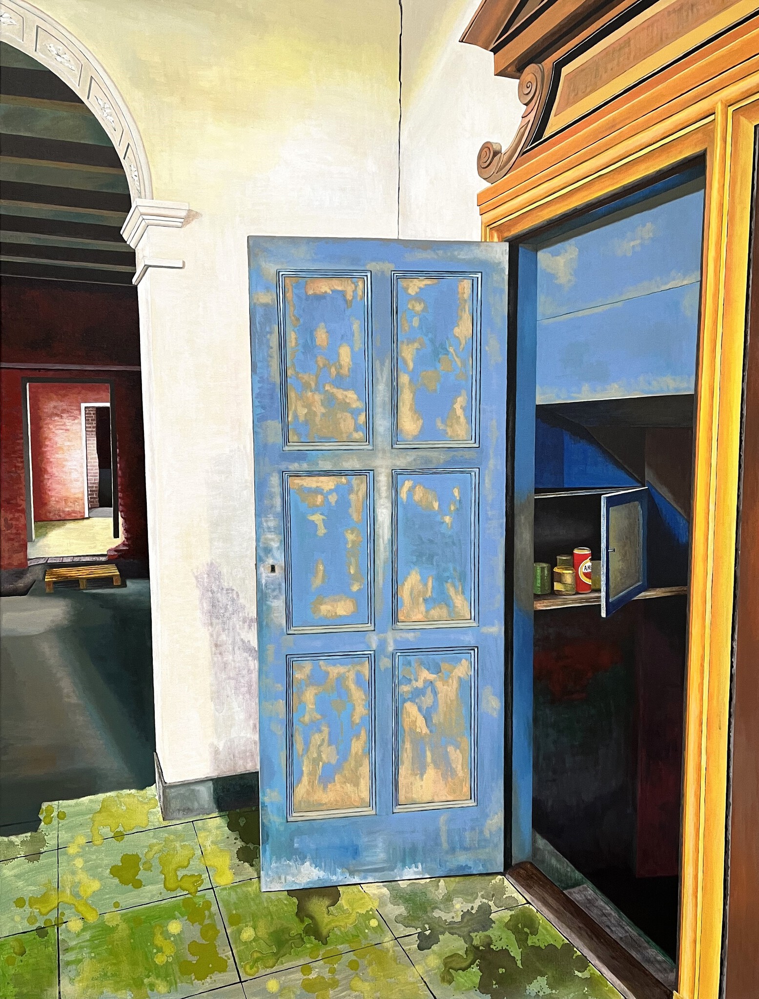 De laatste bewoner van de boerderij heeft allerhande levensmiddelen achtergelaten in de voorraadkast, waaronder een karakteristiek felrood bierblikje.
