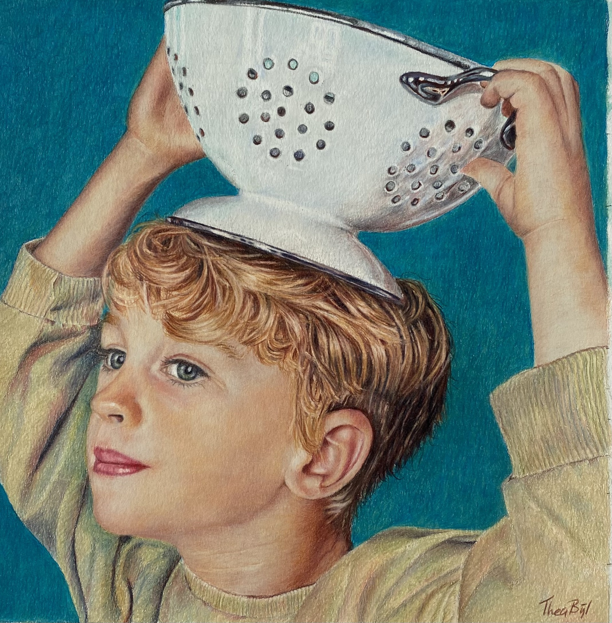Schilderijen van Thea Bijl zijn een afspiegeling van haar karakter. Nauwgezet, kleurrijk, uitbundig en tot in de puntjes verzorgd. Thea is een goedlachse geboren Groningse, maar in de ongeveer 25 jaar die ze al in de Kempen woont, naadloos ingepast in de ‘Brabantse cultuur’. Bij een uitzending naar Amerika volgde ze kunstopleidingen in Champaign-Urbana aan het Parkland College. Ze ontwikkelde in de loop van de jaren een stijl waarbij ze steeds meer gebruik maakte van kleurpotloden, vooral Caran d’Ache Luminance, de Rolls Royce onder de kleurpotloden. Thea begon destijds voornamelijk met dierenportretten wat de laatste jaren allerlei grotere composities met dieren werden. Ook portretten met mensen zijn een steeds belangrijker specialisme geworden.