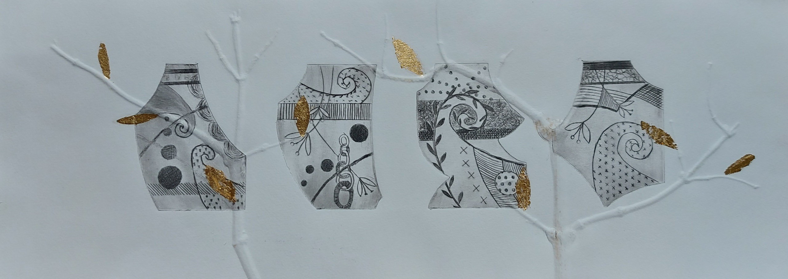 combinatie ets, bladgoud en blinddruk