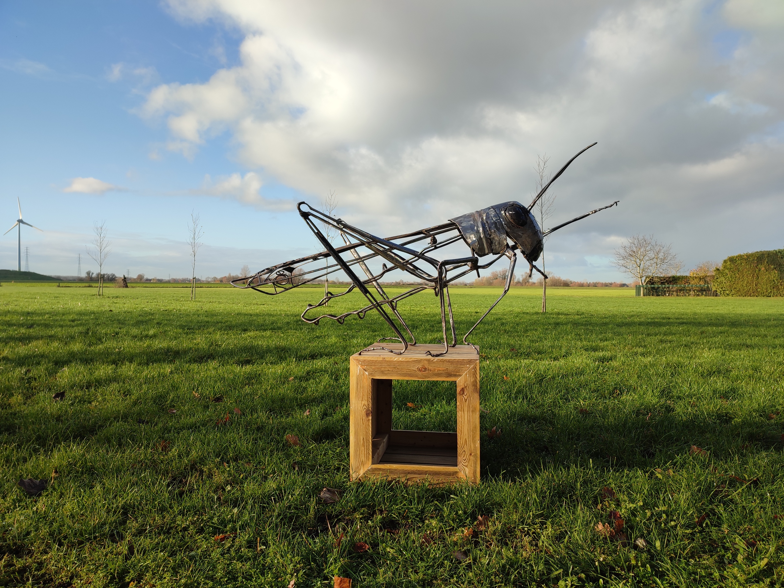 staal op houten sokkel