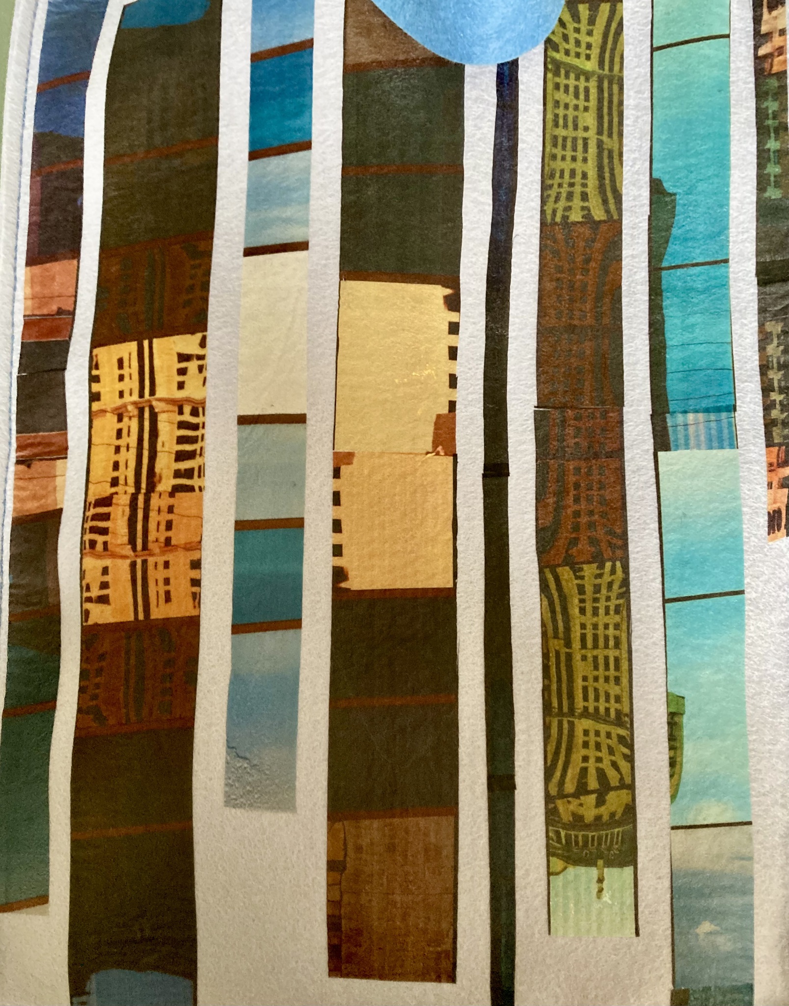 "Spiegeling" is de naam van deze tas. Tot stand gekomen dmv fotoafdruk/transferdruk op industriël vilt