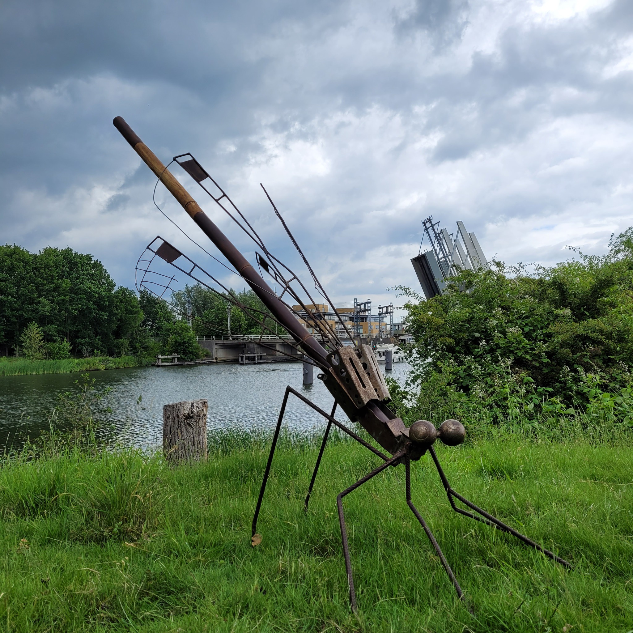 Natuur Dieren Insect Juffer Libelle Staal Cortenstaal Bamboe Gerecycled Buitenbeeld Binnenbeeld