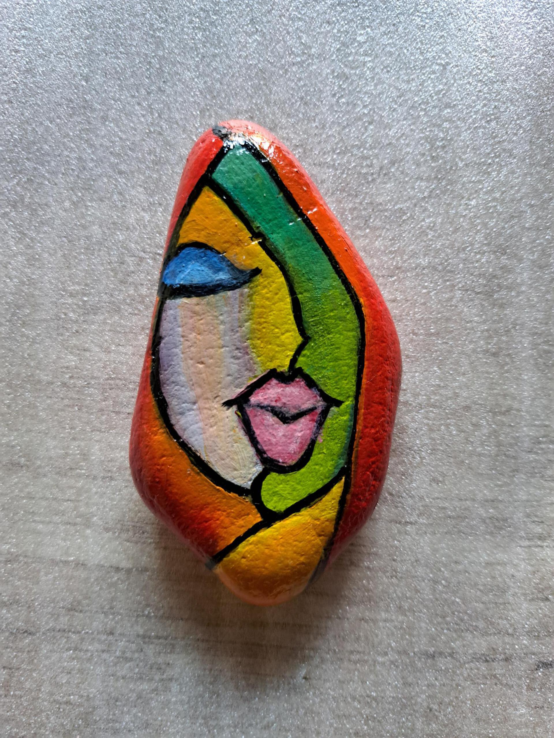 GEZICHT 1 Olieverf op steen en afgelakt. Eventueel te leveren met standaard.