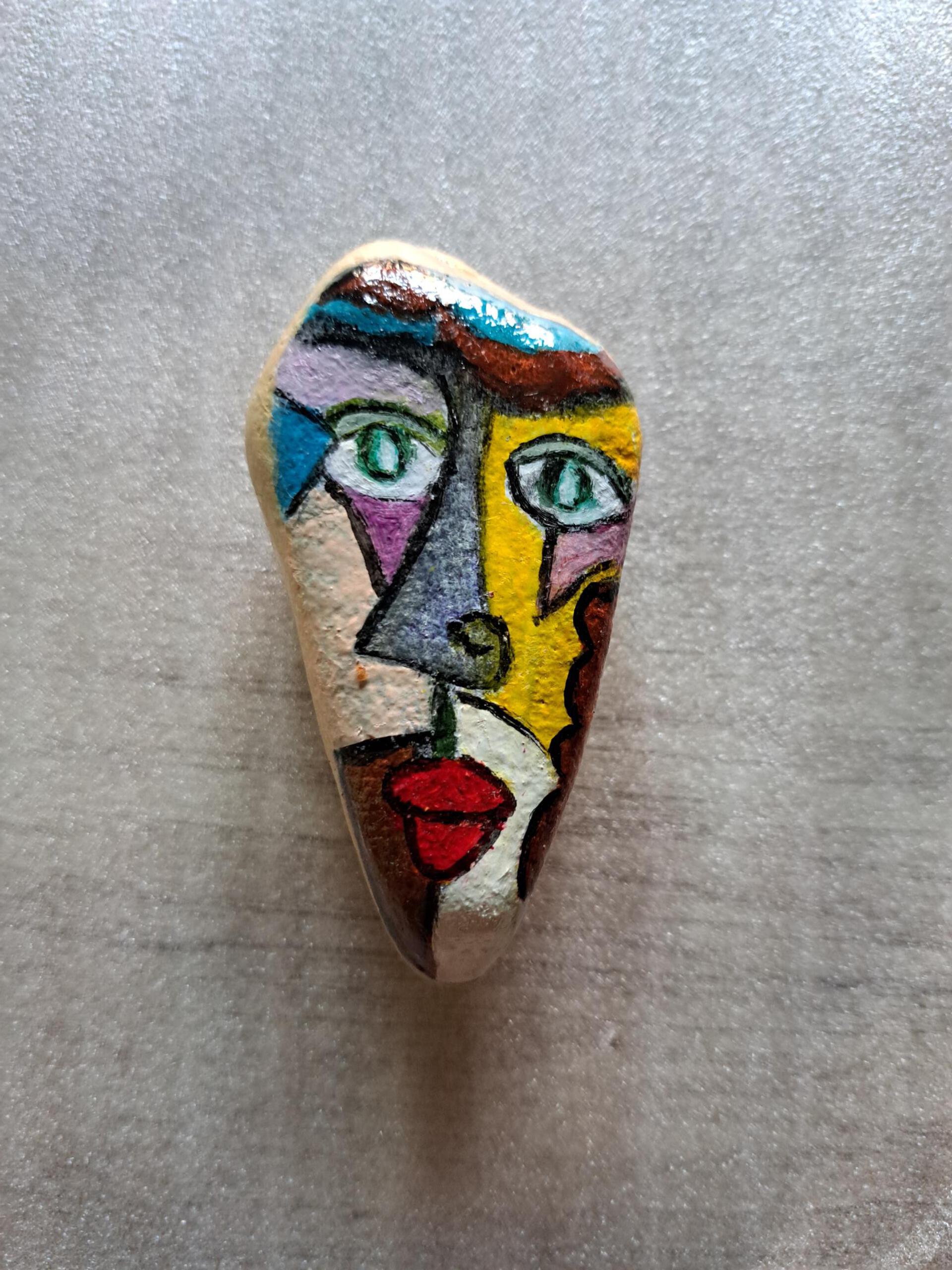 GEZICHT 2 Olieverf op steen en afgelakt. Eventueel te leveren met standaard.