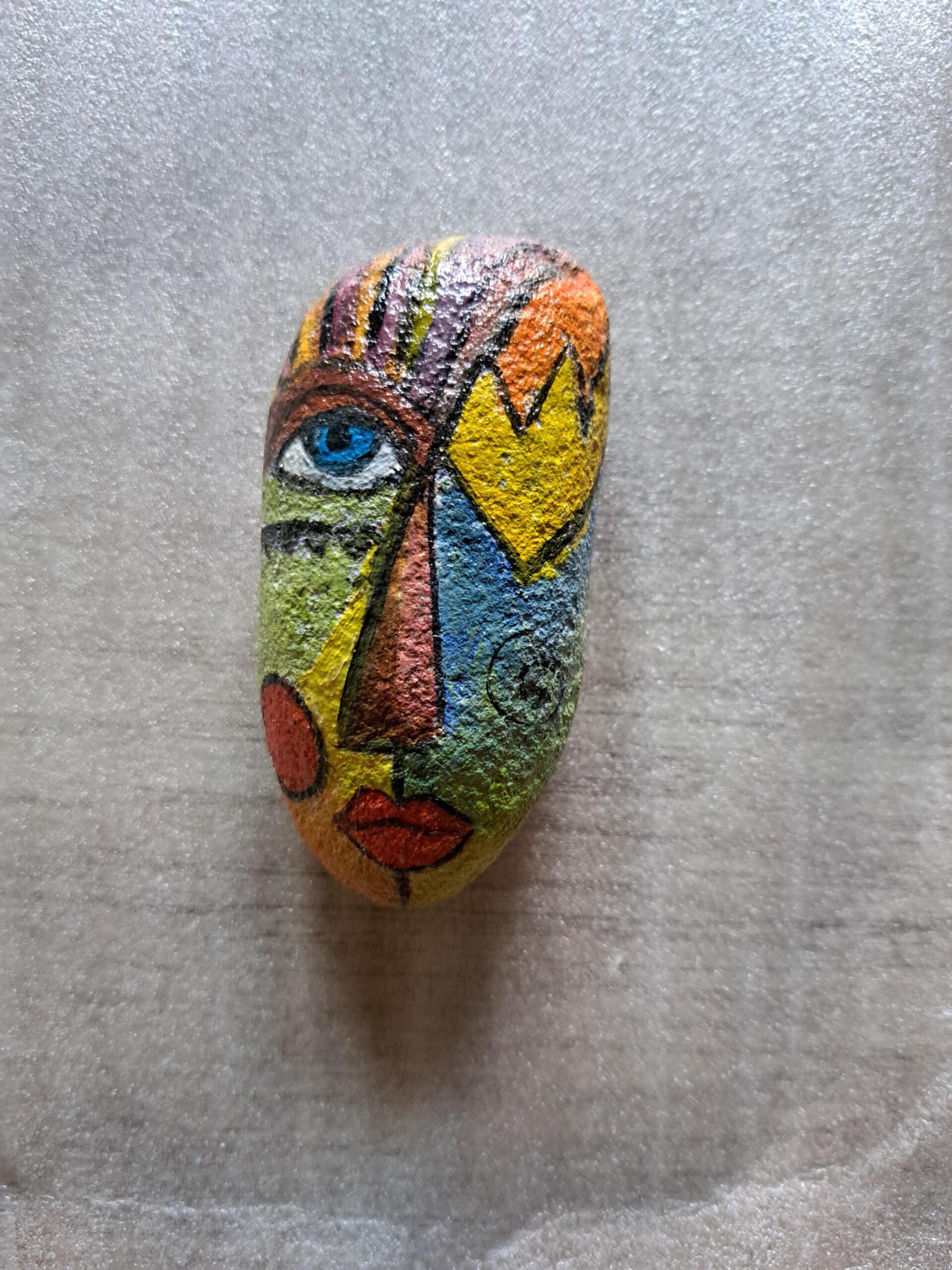 GEZICHT 3 Olieverf op steen en afgelakt. Eventueel te leveren met standaard.