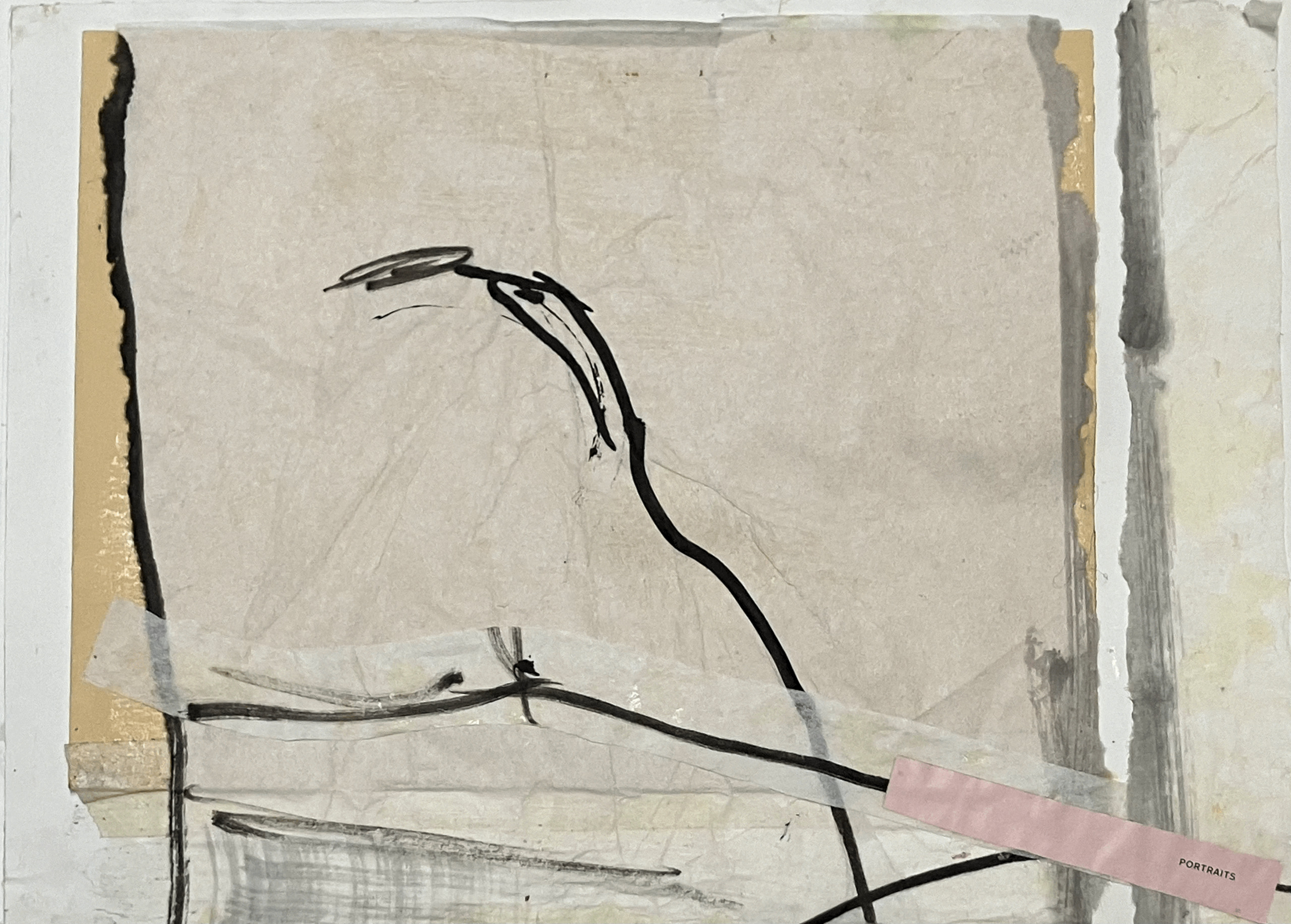 Papier, lijm, chinese inkt, grafiet 2023-2024 Afmeting inclusief lijst