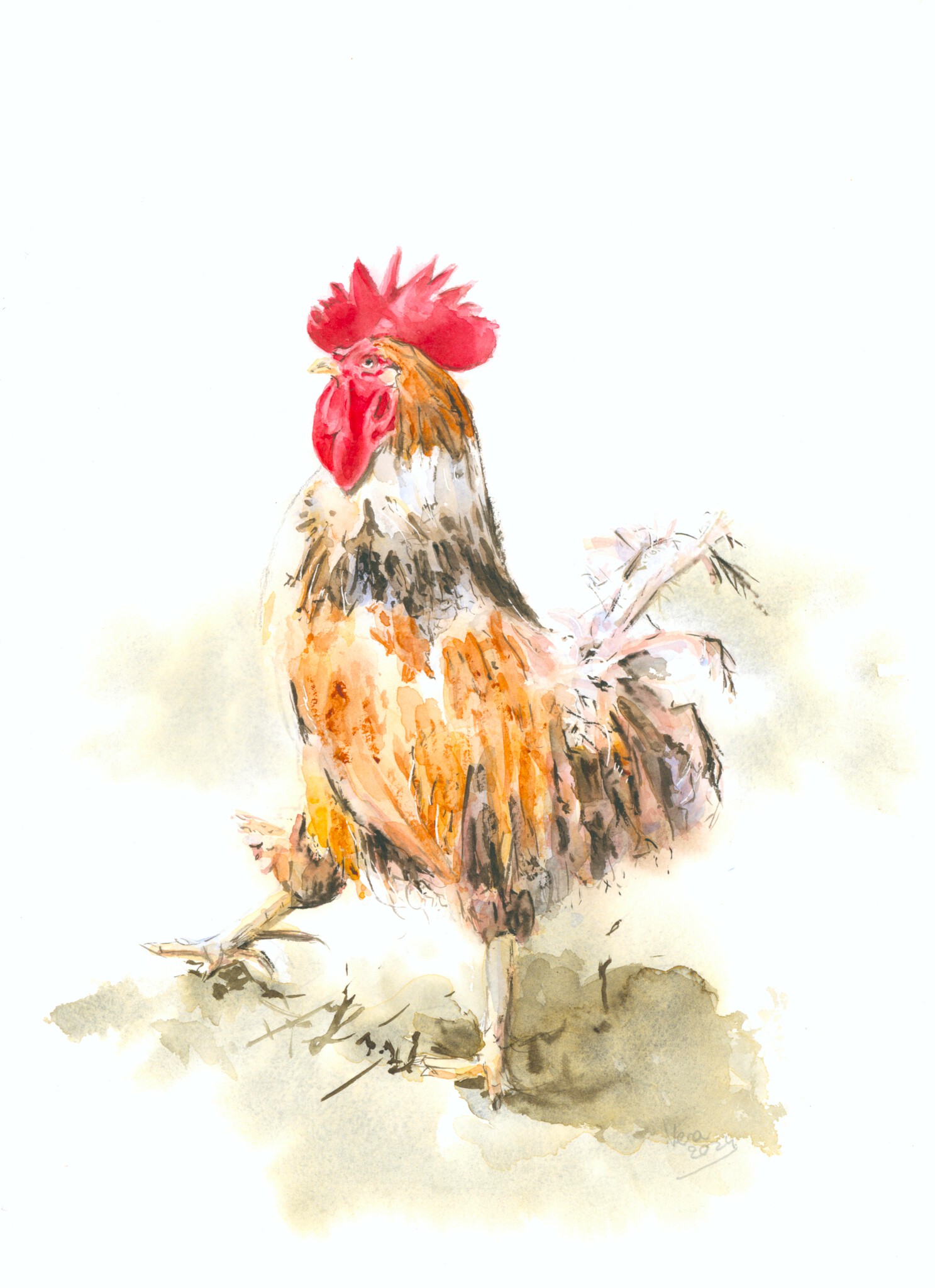 Haan Vogel Dier Aquarel Boerderij Kip Gevogelte Boerderijdieren Pluimvee