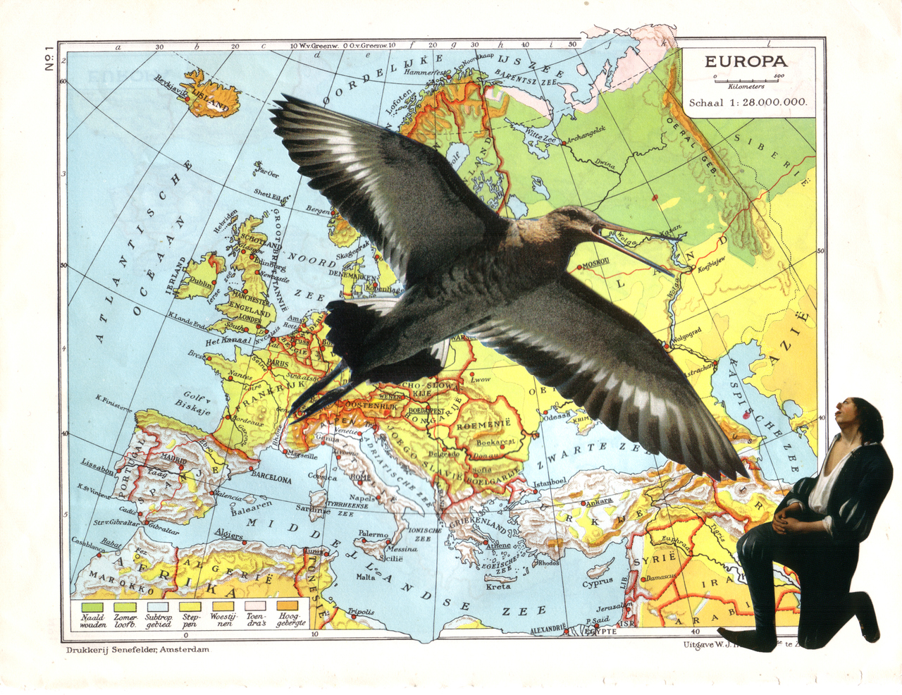 Vogel Man Figuur Dier Collage Wild Gevogelte Landkaart
