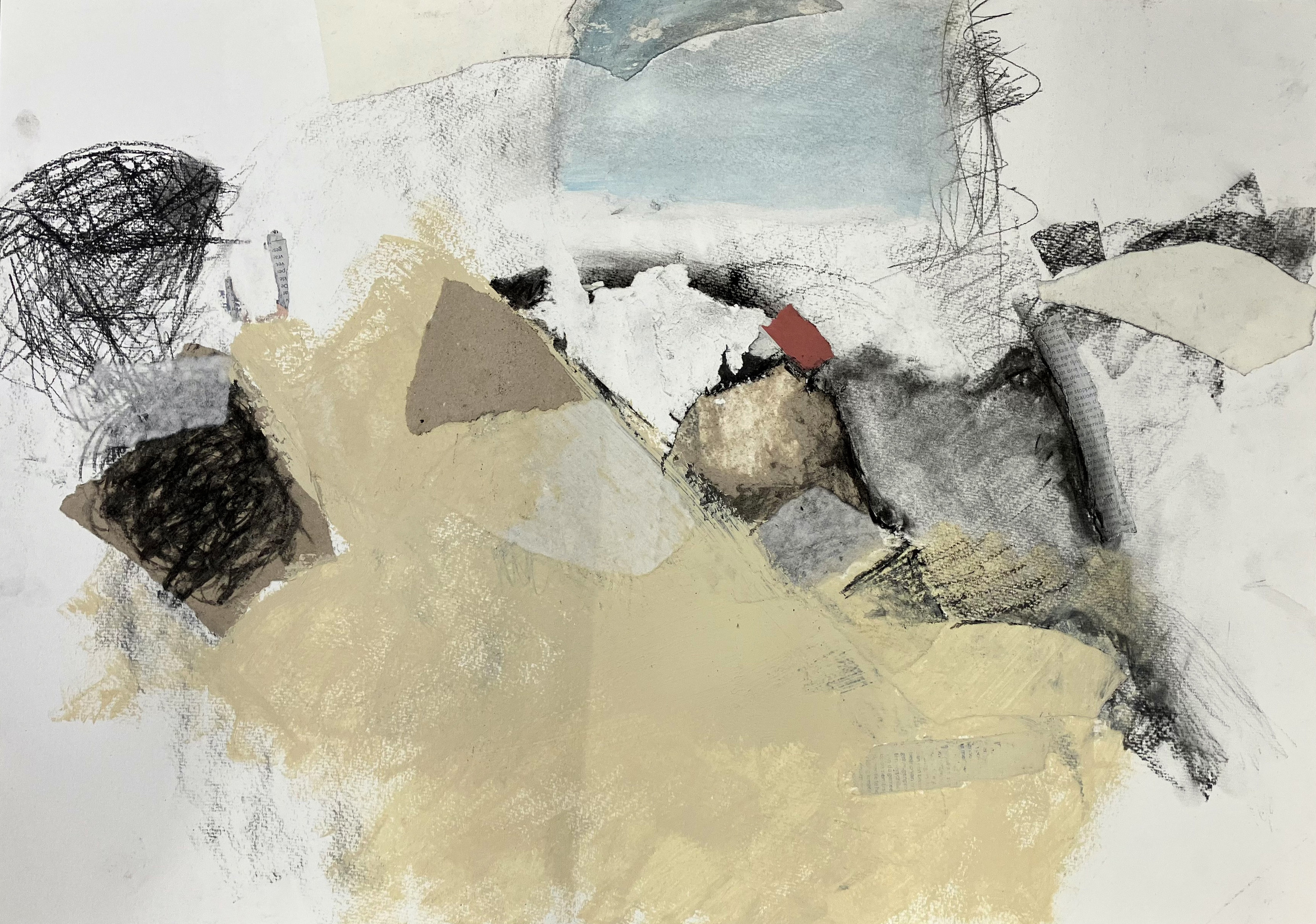 Papier, lijm, houtskool, potlood, arylverf