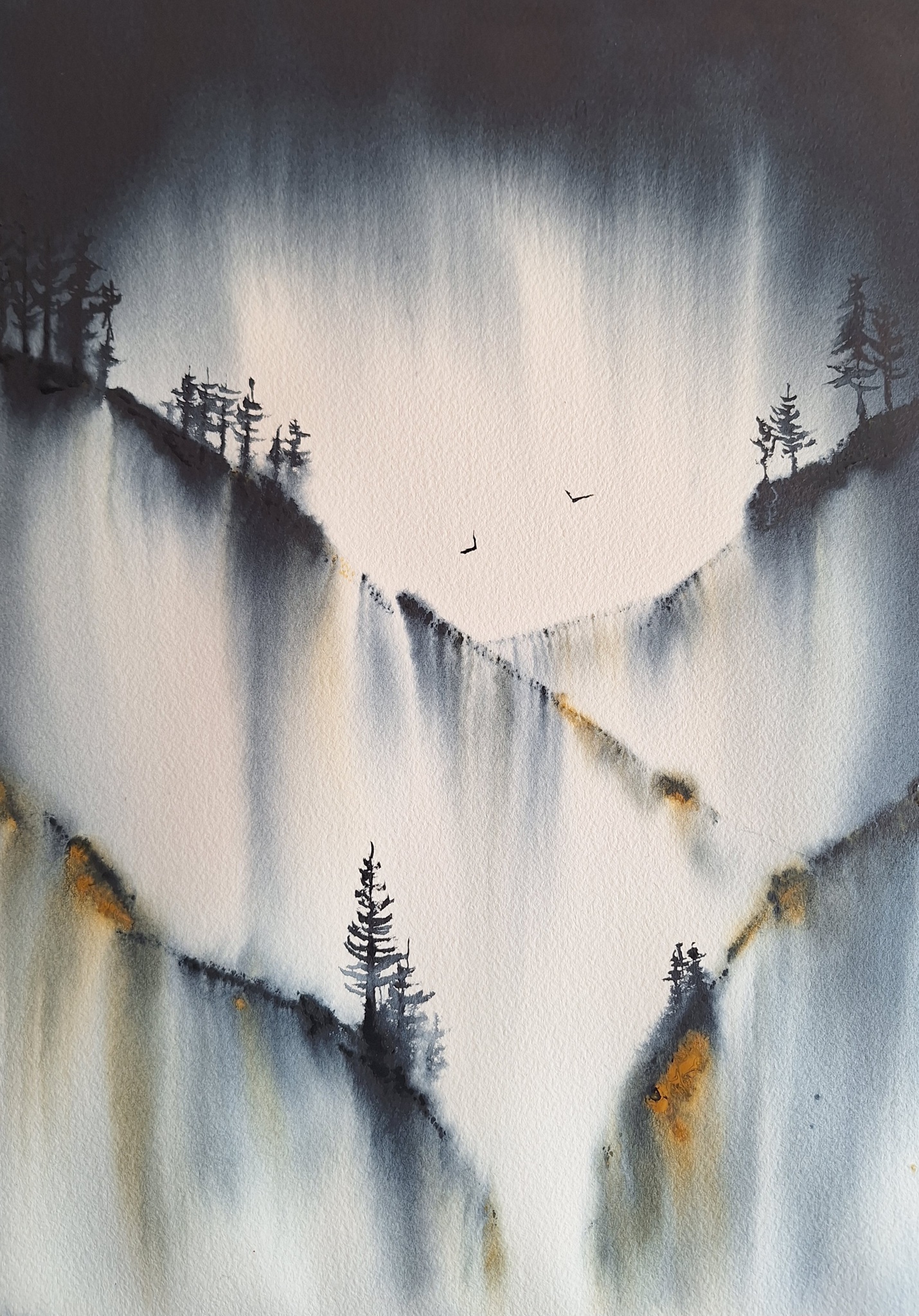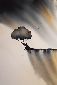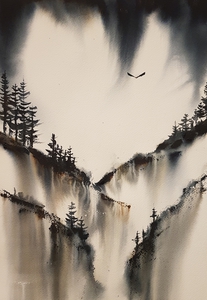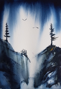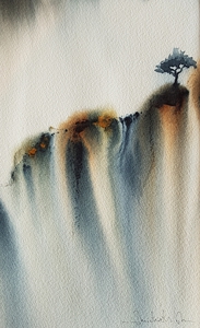 Abstract Landschap Aquarel Boom Watercolor Berg Mountains Deep Mountain Nancy Michiels
