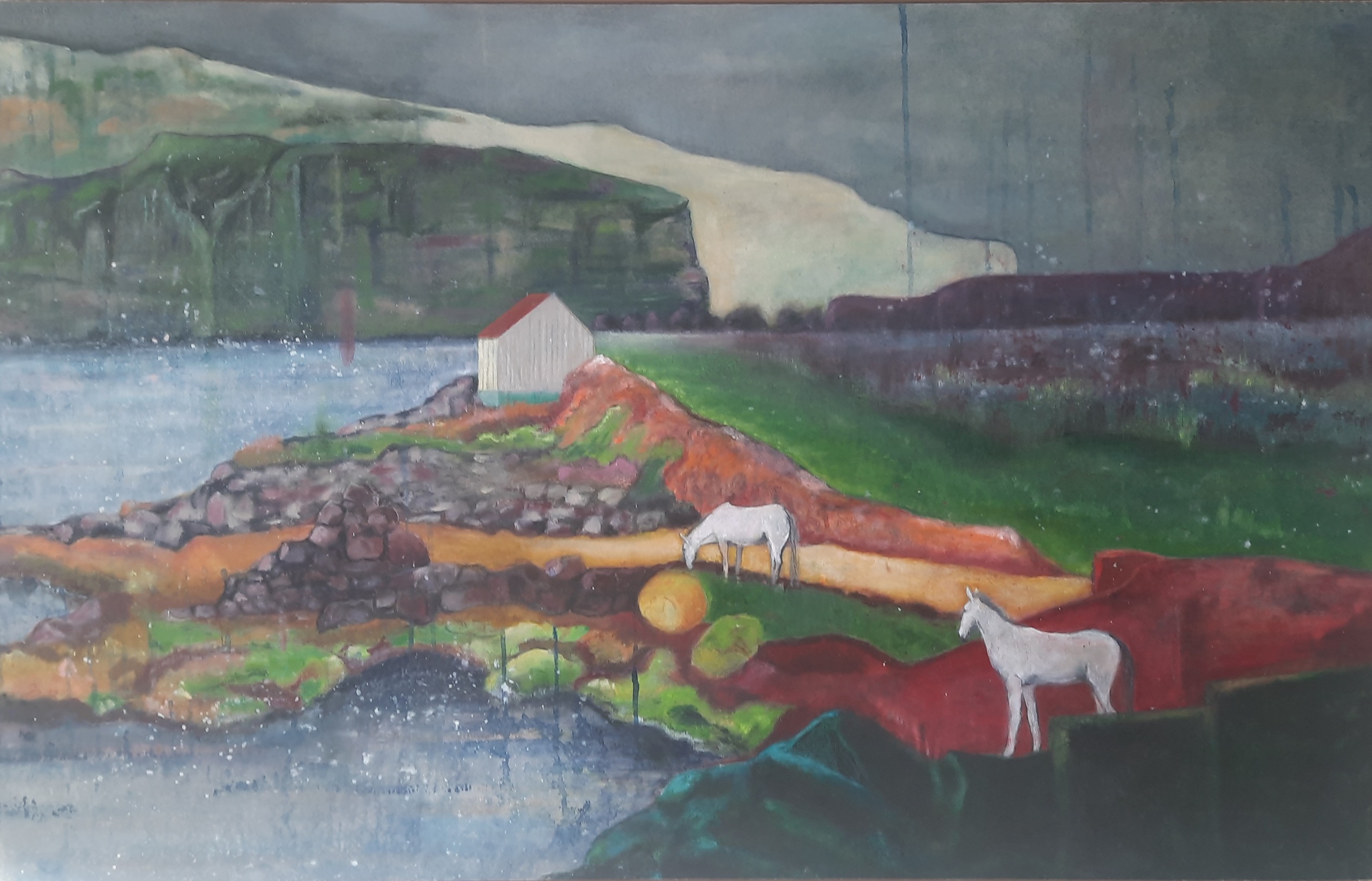 Inkt, olieverf en oliekleurpotlood op katoenpapier op paneel.