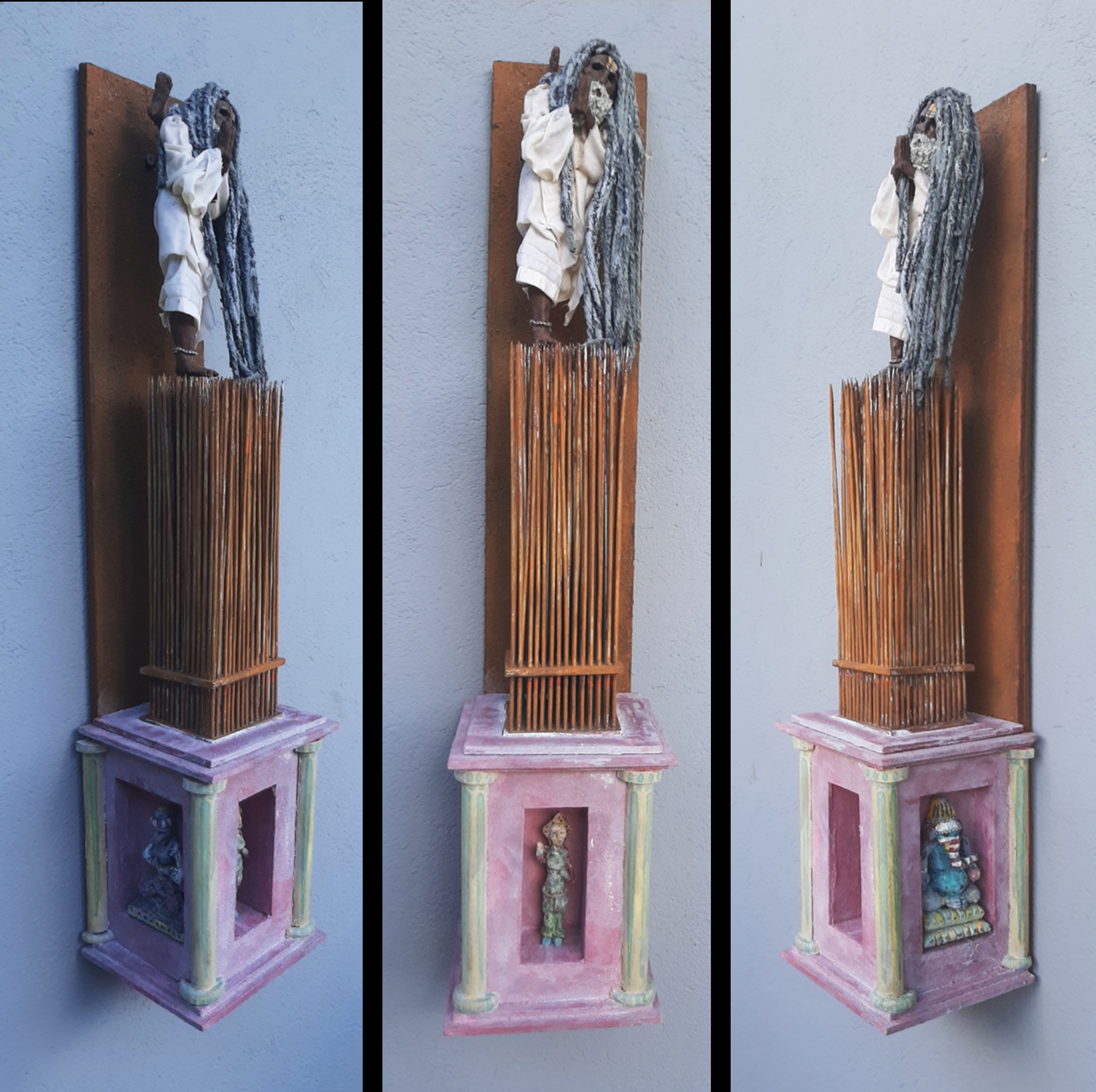 Fakir, mixed media, 77 x 17 x 17 cm, prijs op aanvraag