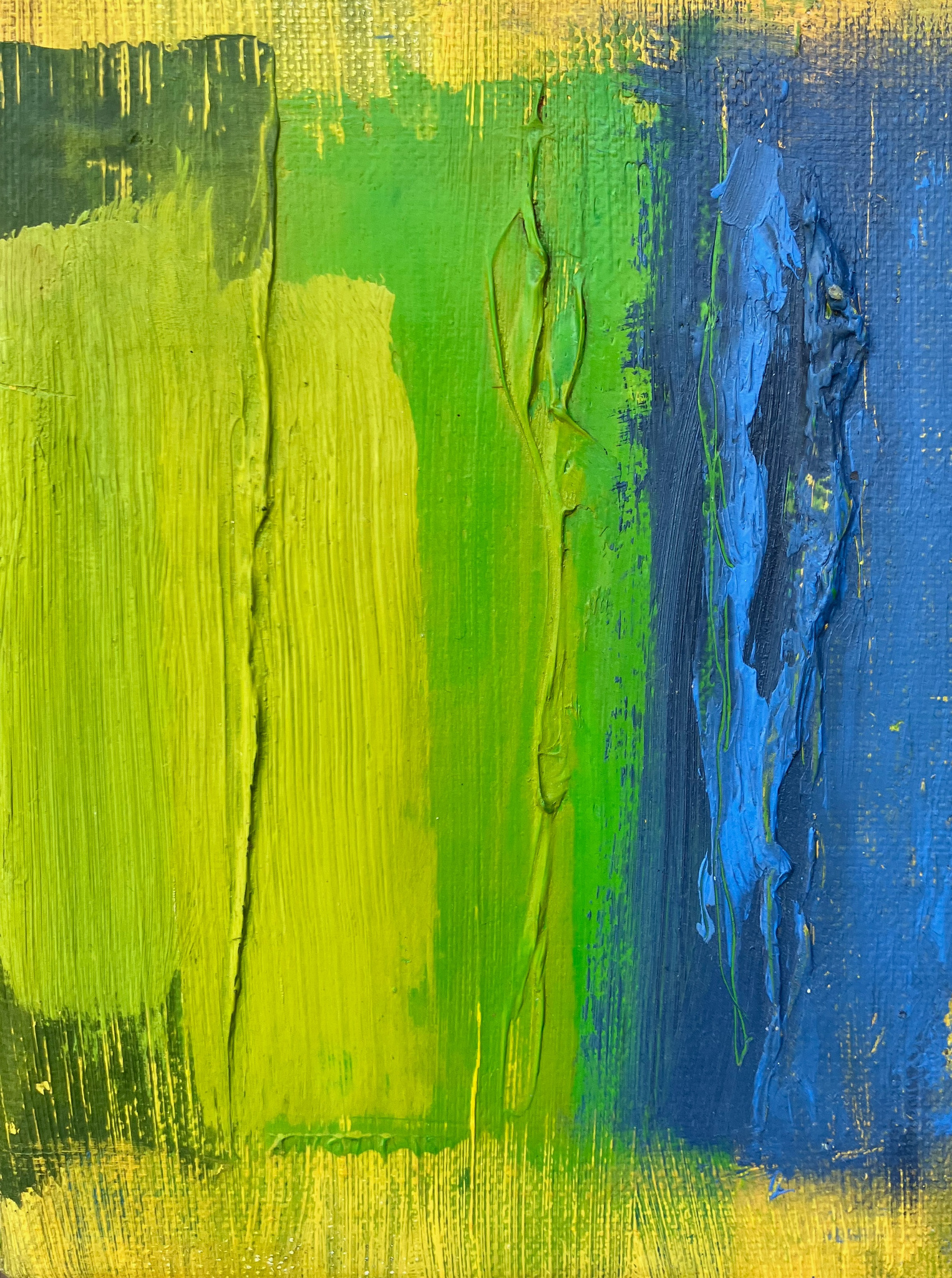Schilderijen, collages en tekeningen. Een poëzie van landschappelijke elementen, een expressie van verlangen naar verstilling.