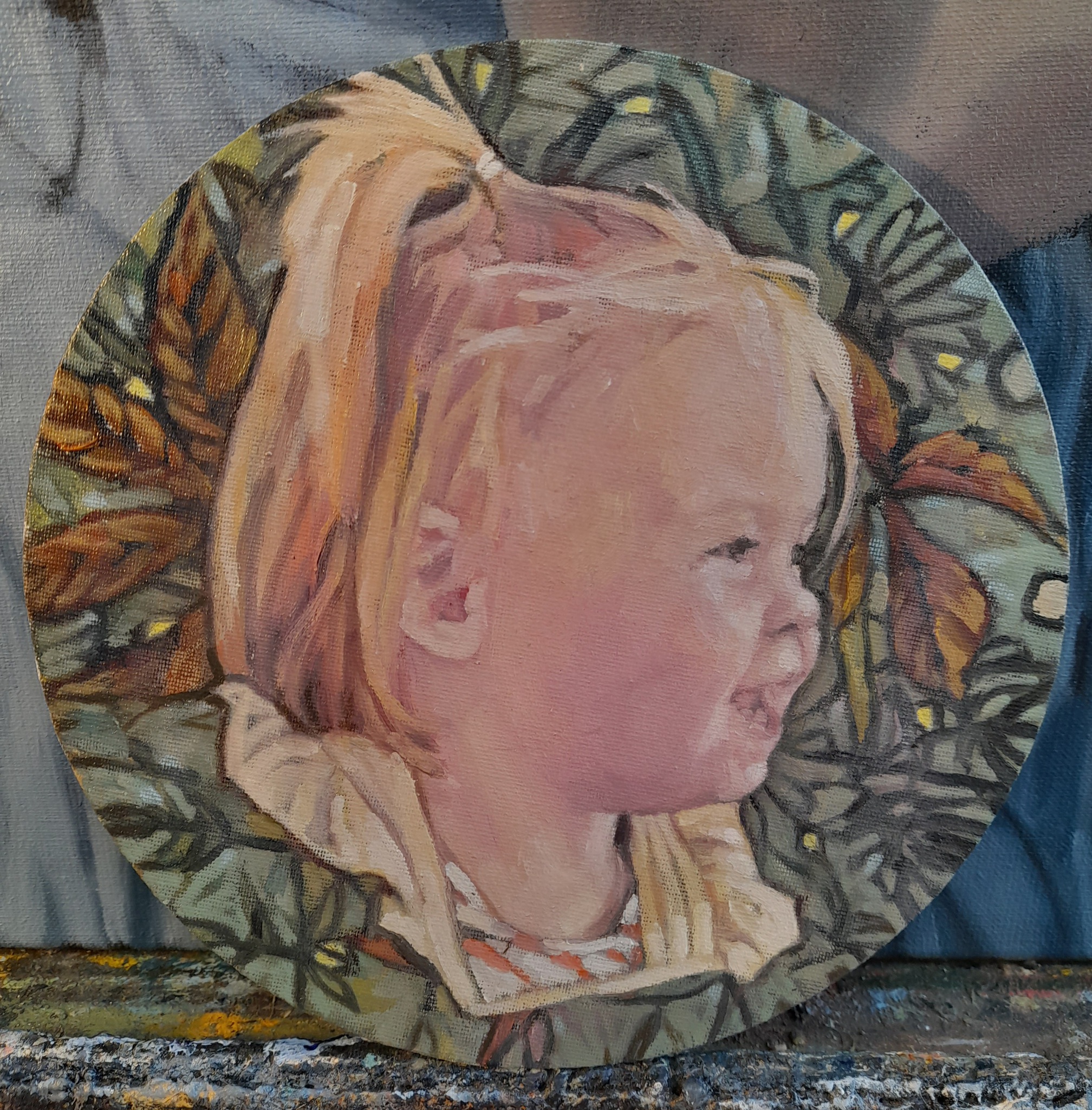 Klein rond portretje van Sara.
