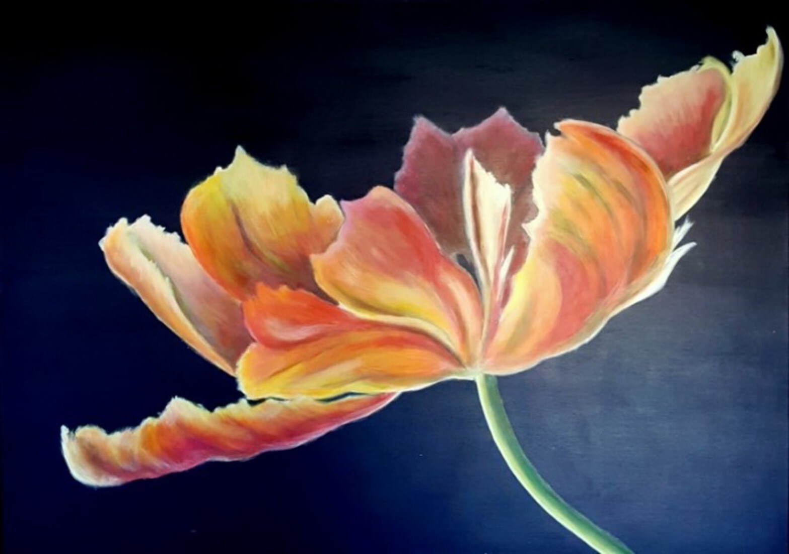 Parrot Tulip Salmon, acryl op canvas, in 3D