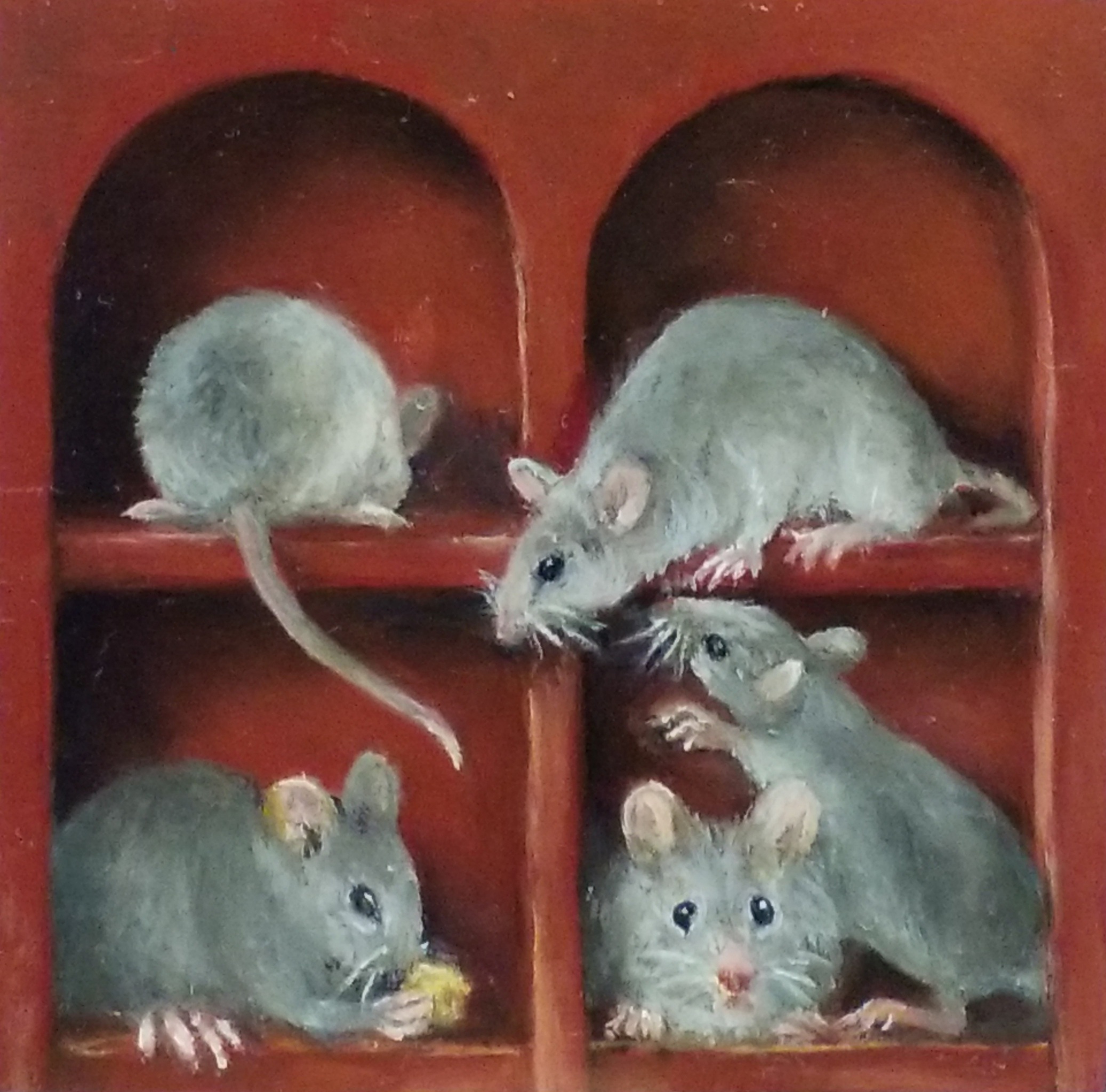 Klein Realistisch Olieverf Paneel Muis Muizen Miniatuur